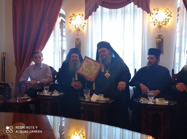 Τον Σεβασμιώτατο στην επίσκεψή του συνόδευαν ο Πρωτοσύγκελος της Ιεράς Μητροπόλεως, πανοσιολογιώτατος Αρχιμανδρίτης π. Ιγνάτιος Μουρτζανός και ο διευθυντής του ιδιαιτέρου γραφείου του δρ Σωτήριος Μπαλατσούκας, καθηγητής της Ανωτάτης Εκκλησιαστικής Ακαδημίας Θεσσαλονίκης.