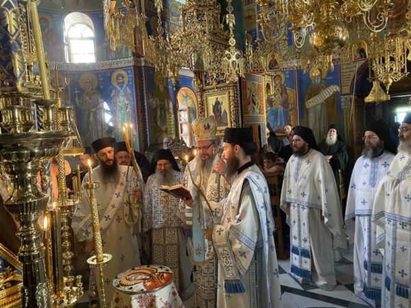 Στον Πανηγυρικό Εσπερινό και εν συνεχεία στον Όρθρο και στη Θεία Λειτουργία για την εορτή της Κοιμήσεως και της εις Ουρανούς Μεταστάσεως της Υπεραγίας Θεοτόκου στην Ιερά Μονή Σίμωνος Πέτρας προεξήρχε ο Σεβασμιώτατος Μητροπολίτης Λαρίσης και Τυρνάβου κ. Ιερώνυμος, προσκεκλημένος του Καθηγούμενου αυτής, Πανοσιολογιωτάτου Αρχιμανδρίτου κ. Ελισαίου.