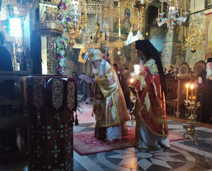 Το βράδυ τελέσθηκε Ιερά Αγρυπνία στο Πρωτάτο παρουσία της Ιεράς Επιστασίας, προεξάρχοντος του Μητροπολίτου Νικοπόλεως και Πρεβέζης κ. Χρυσοστόμου.