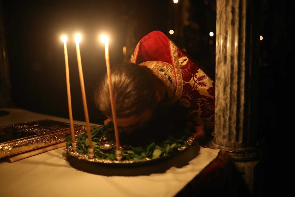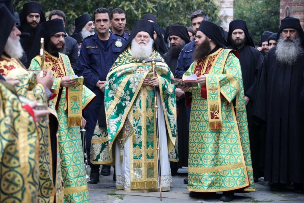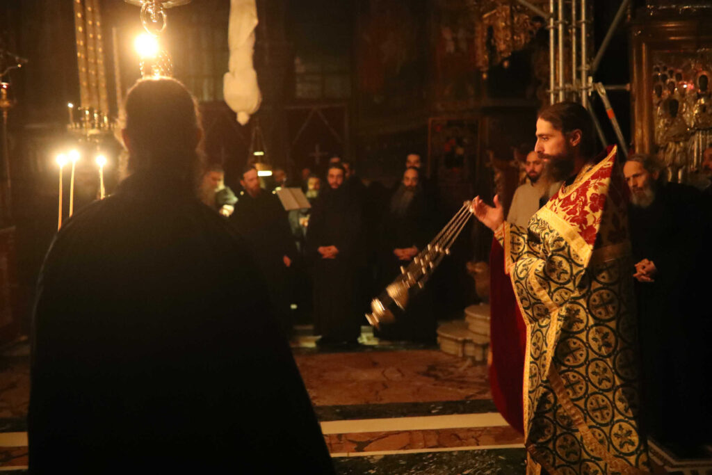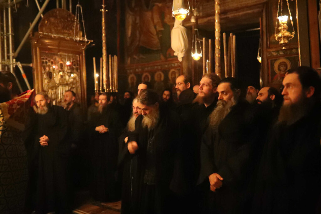 Στη Θεία Λειτουργία που τελέστηκε προεξήρχε ο Καθηγούμενος της Μονής Γέροντας Εφραίμ, συλλειτουργούντων Βατοπαιδινών πατέρων.
