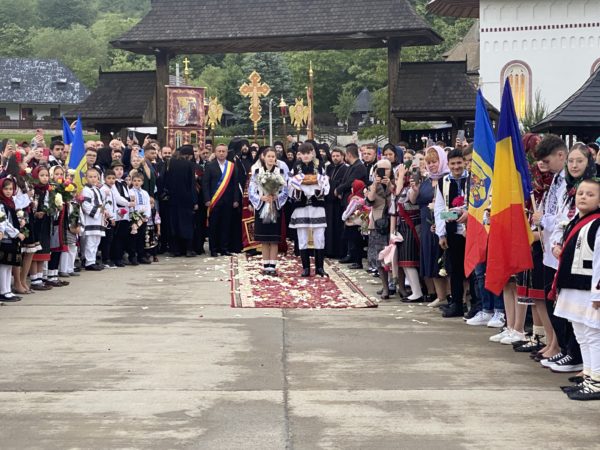 Κλήρος και λαός της Pεριφέρειας Σουτσεάβα με λουλούδια και με εμφανή την συγκίνηση υποδέχθηκαν την Παναγία την Παραμυθία ως μια μεγάλη ευλογία από το Άγιο Όρος αλλά και για να πάρουν την ευχή του αγιορείτη Γέροντα.
