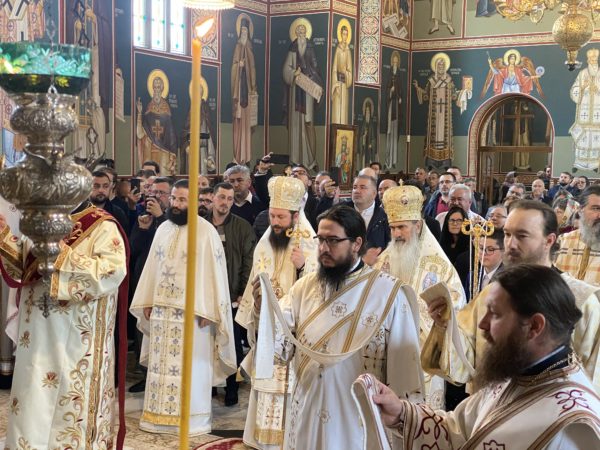 Την Ιερό Κειμήλιο υποδέχθηκε ο Επίσκοπος κ. Δαμασκηνός και ο Ηγούμενος π. Νεκτάριος της Μονής Σιχάστρια Πούτνεϊ με την αδελφότητα.
