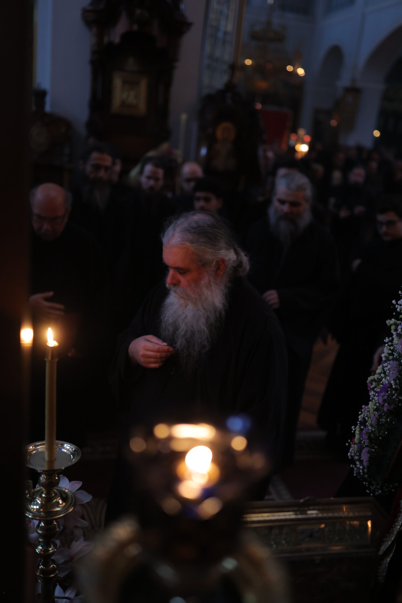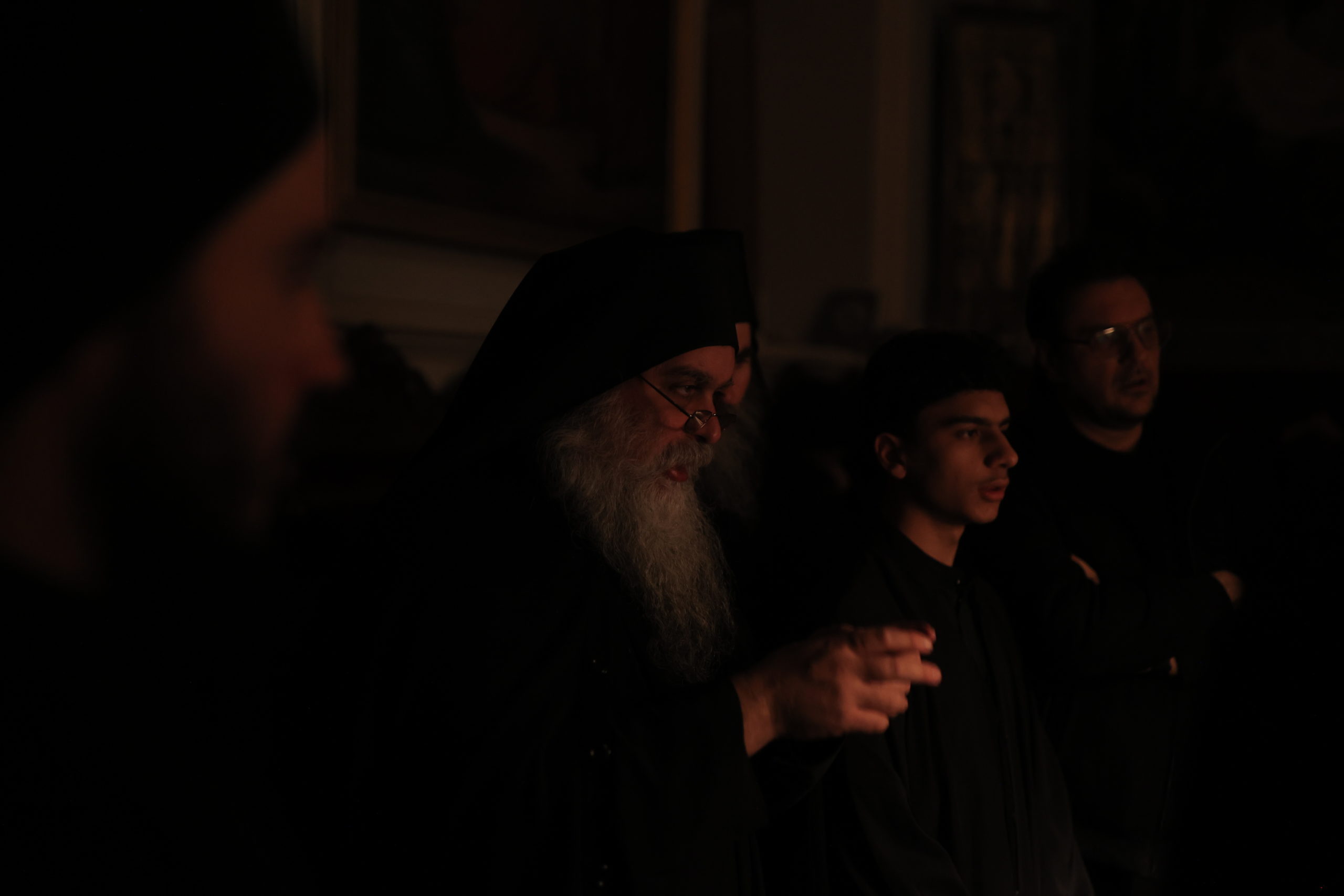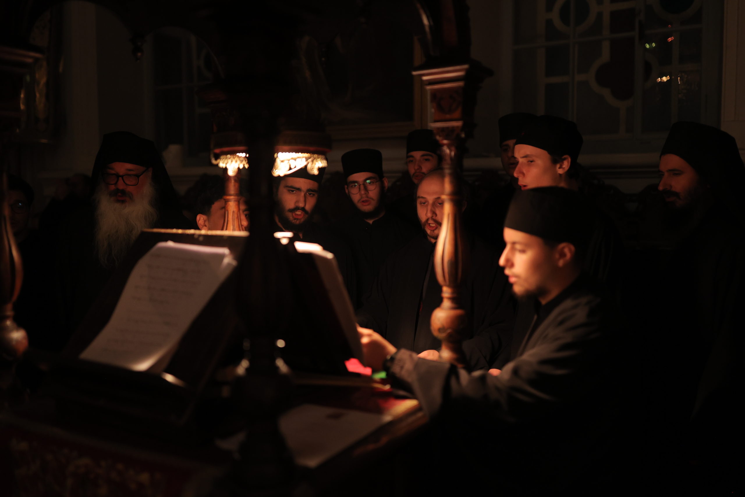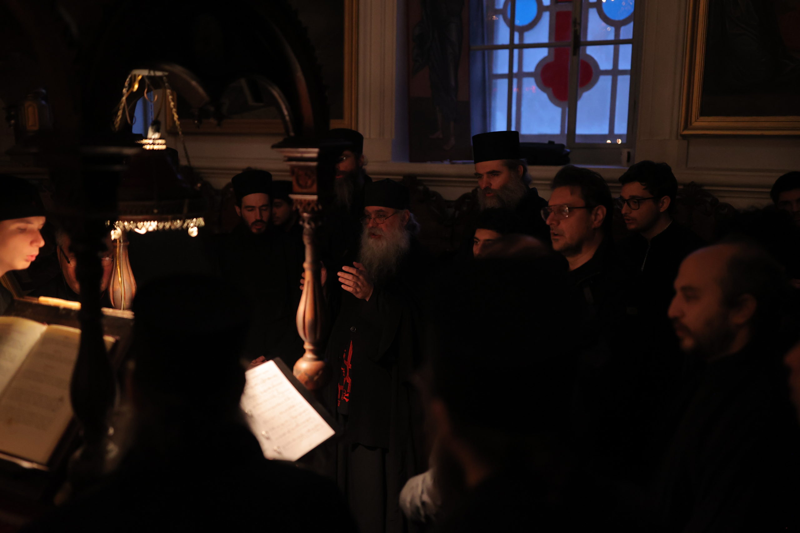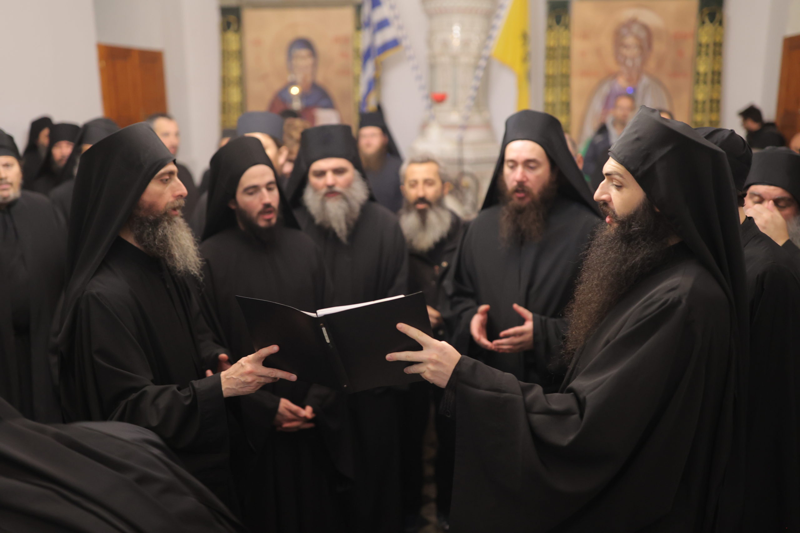 Κατά τον πανηγυρικό Εσπερινό χοροστάτησε ο Δικαίος της Σκήτης Γέροντας Νεκτάριος, καθώς και από πολλοί Κελιώτες πατέρες, ενώ οι ιεροψάλτες απέδωσαν μελωδικά τους ύμνους της εορτής, συμβάλλοντας στο κατανυκτικό κλίμα της ακολουθίας.