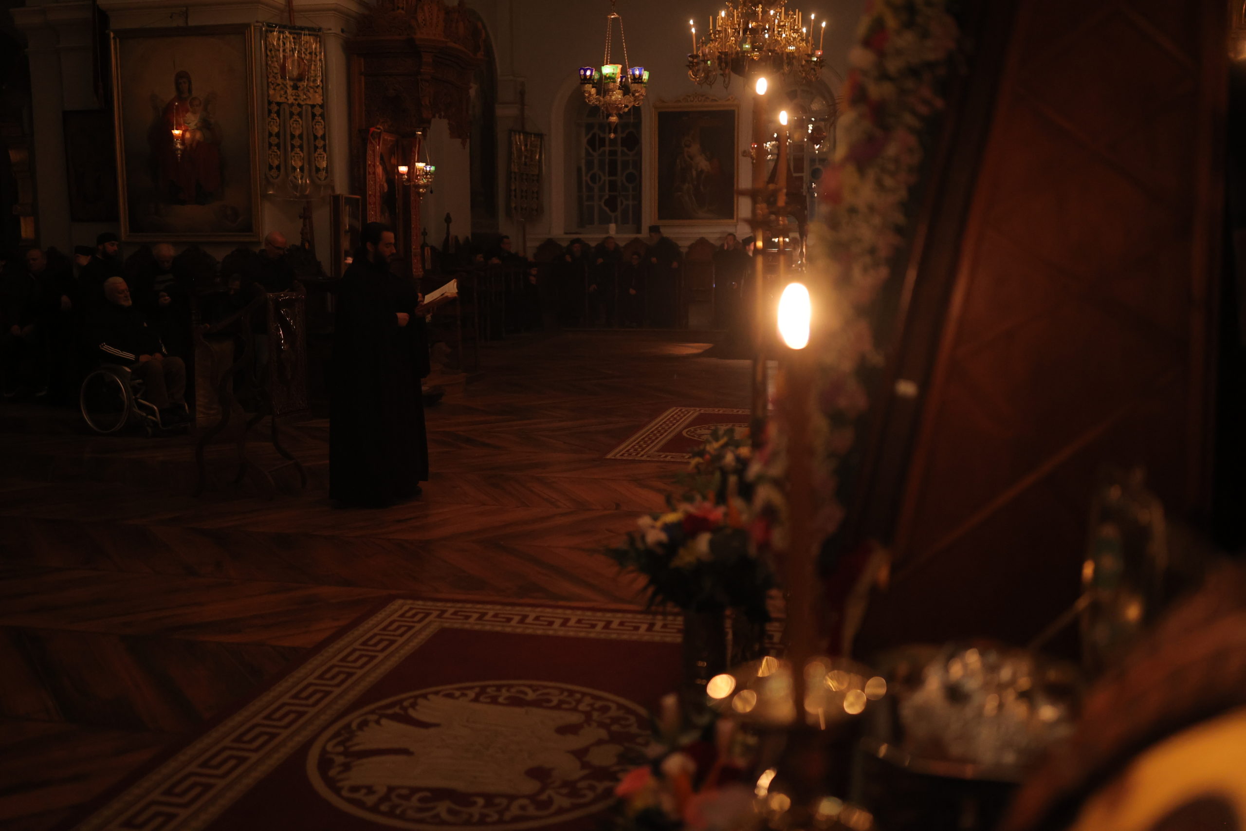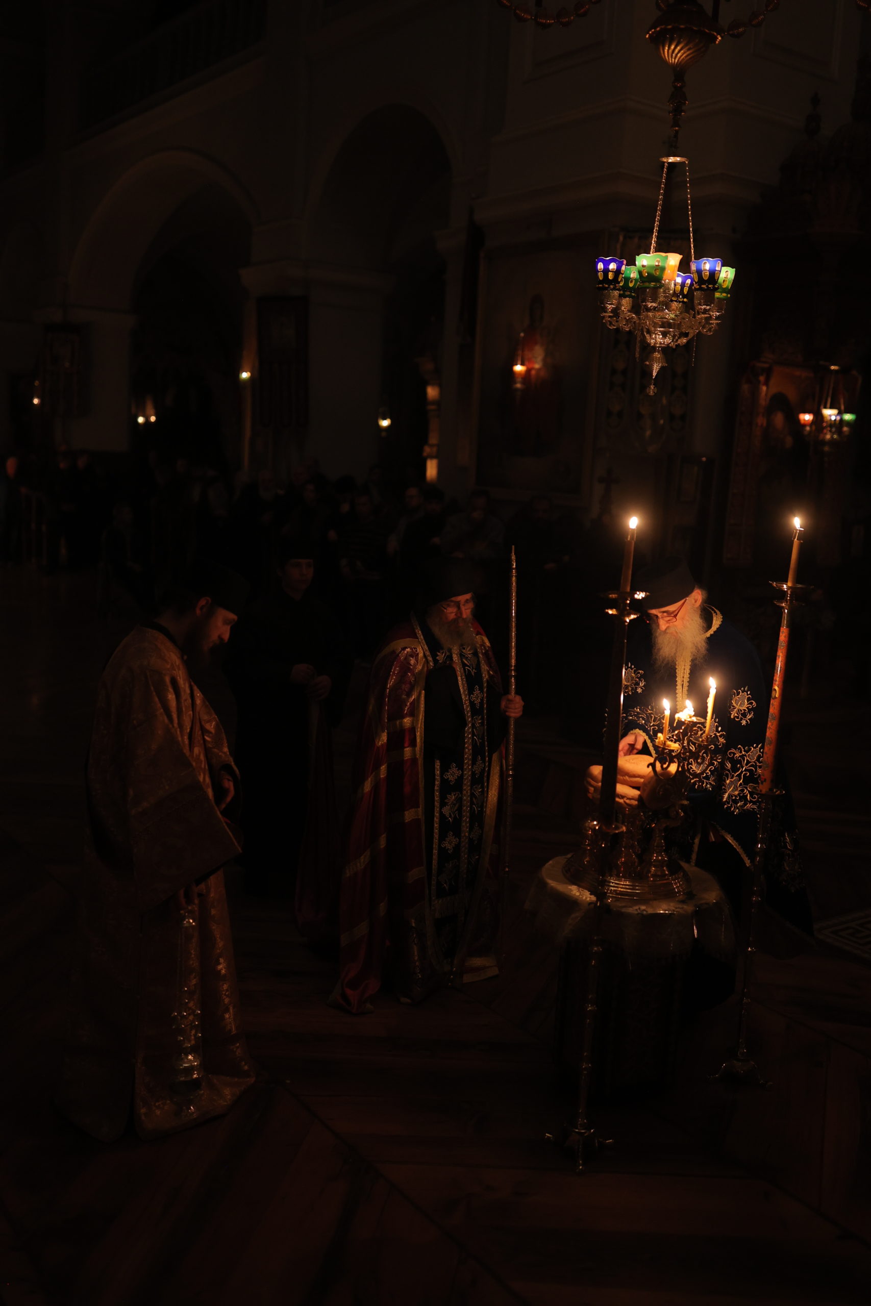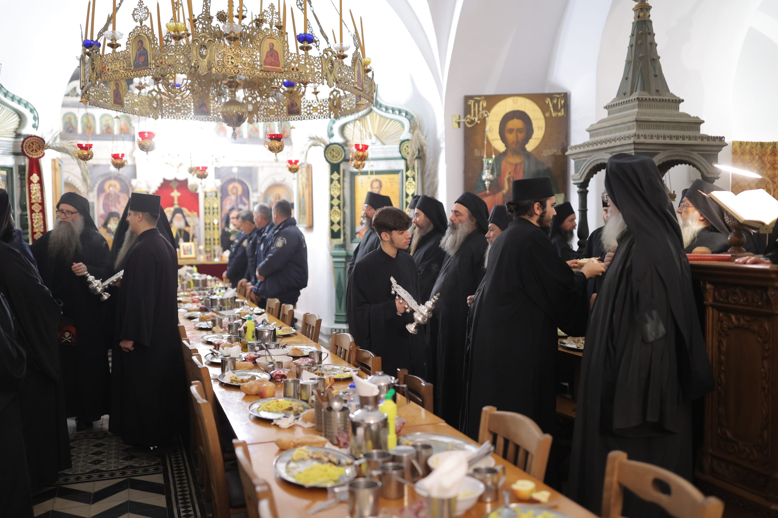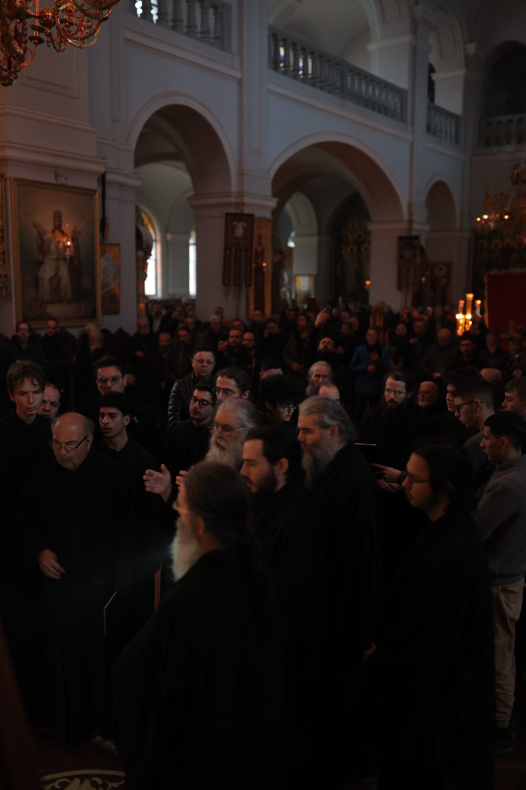Κατά τον πανηγυρικό Εσπερινό χοροστάτησε ο Δικαίος της Σκήτης Γέροντας Νεκτάριος, καθώς και από πολλοί Κελιώτες πατέρες, ενώ οι ιεροψάλτες απέδωσαν μελωδικά τους ύμνους της εορτής, συμβάλλοντας στο κατανυκτικό κλίμα της ακολουθίας.