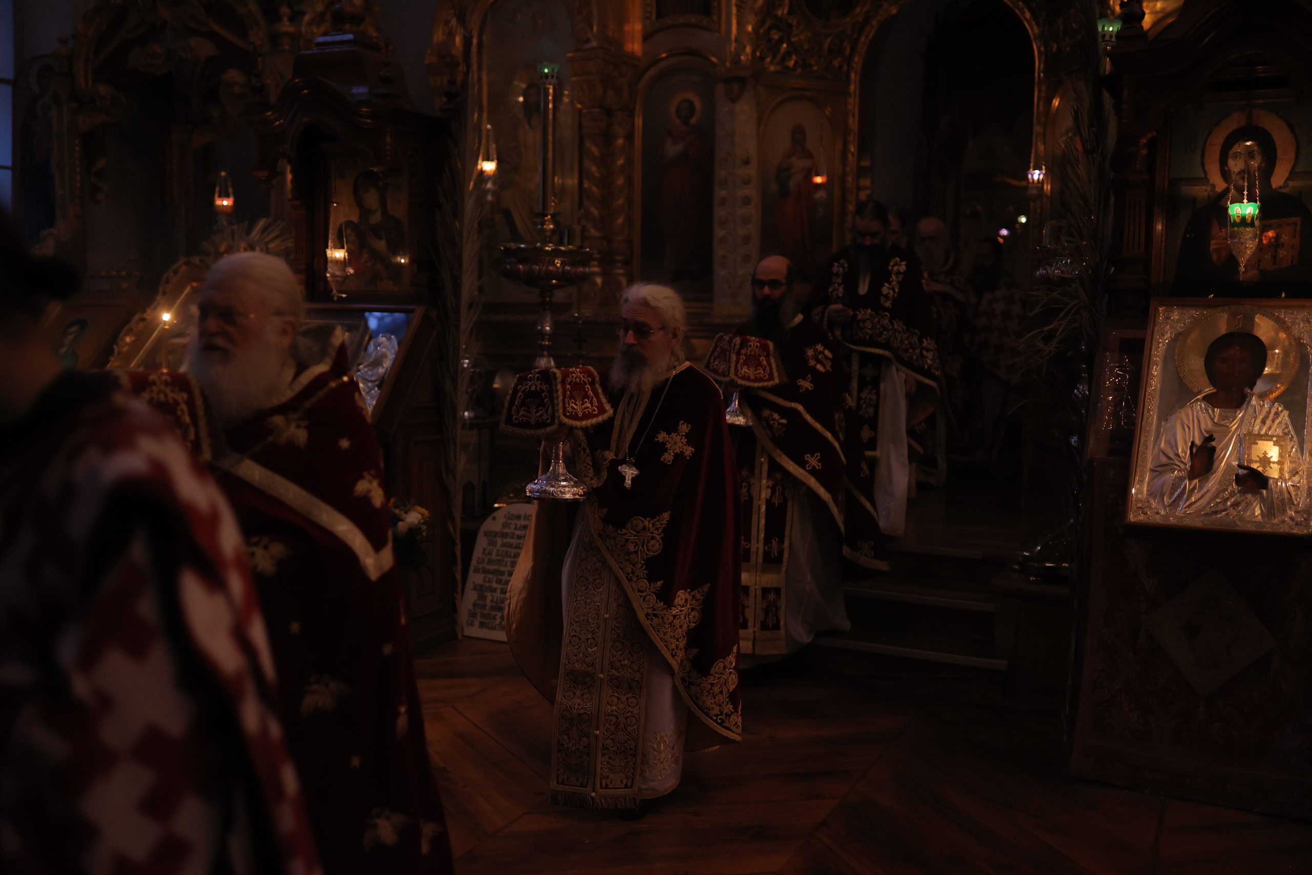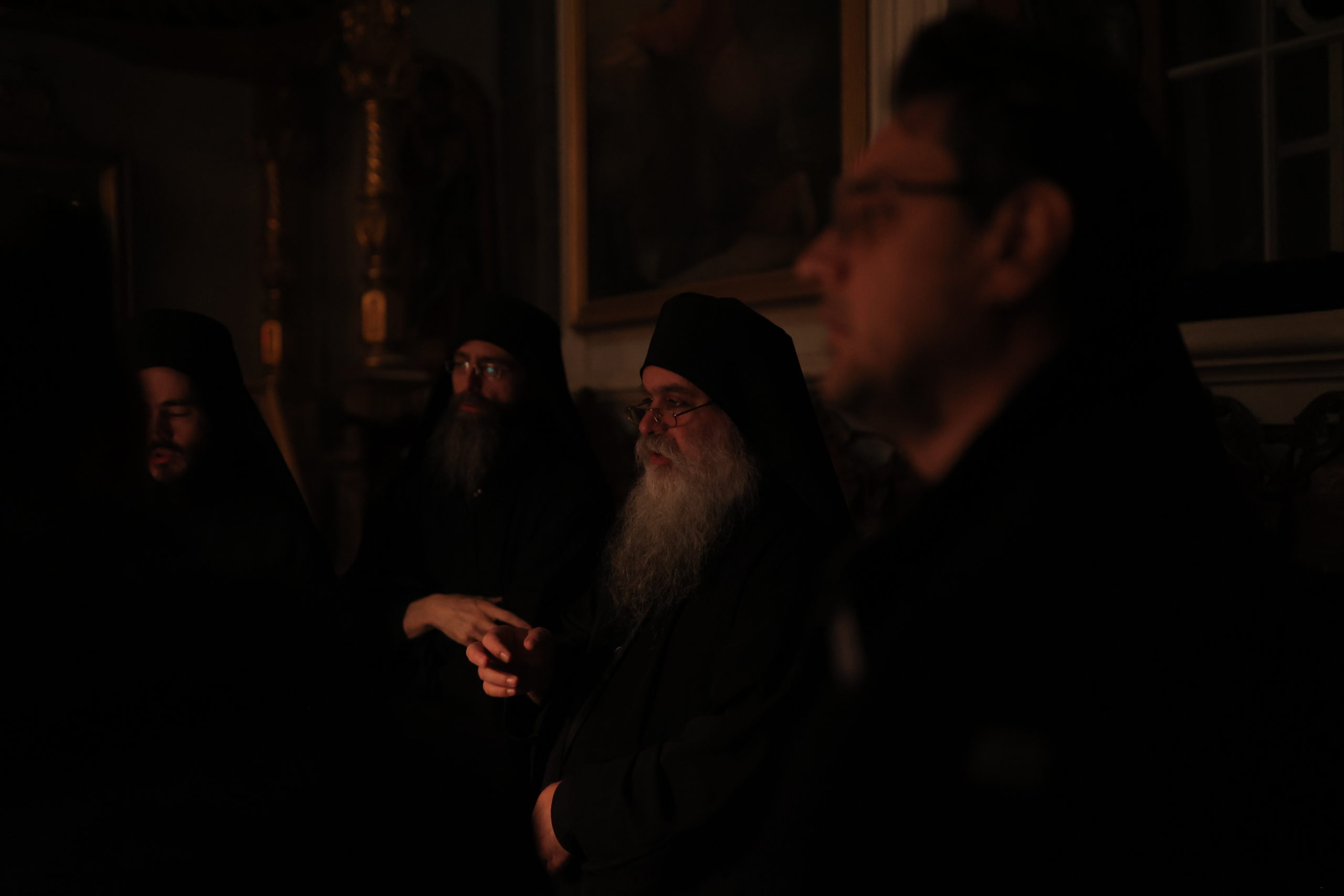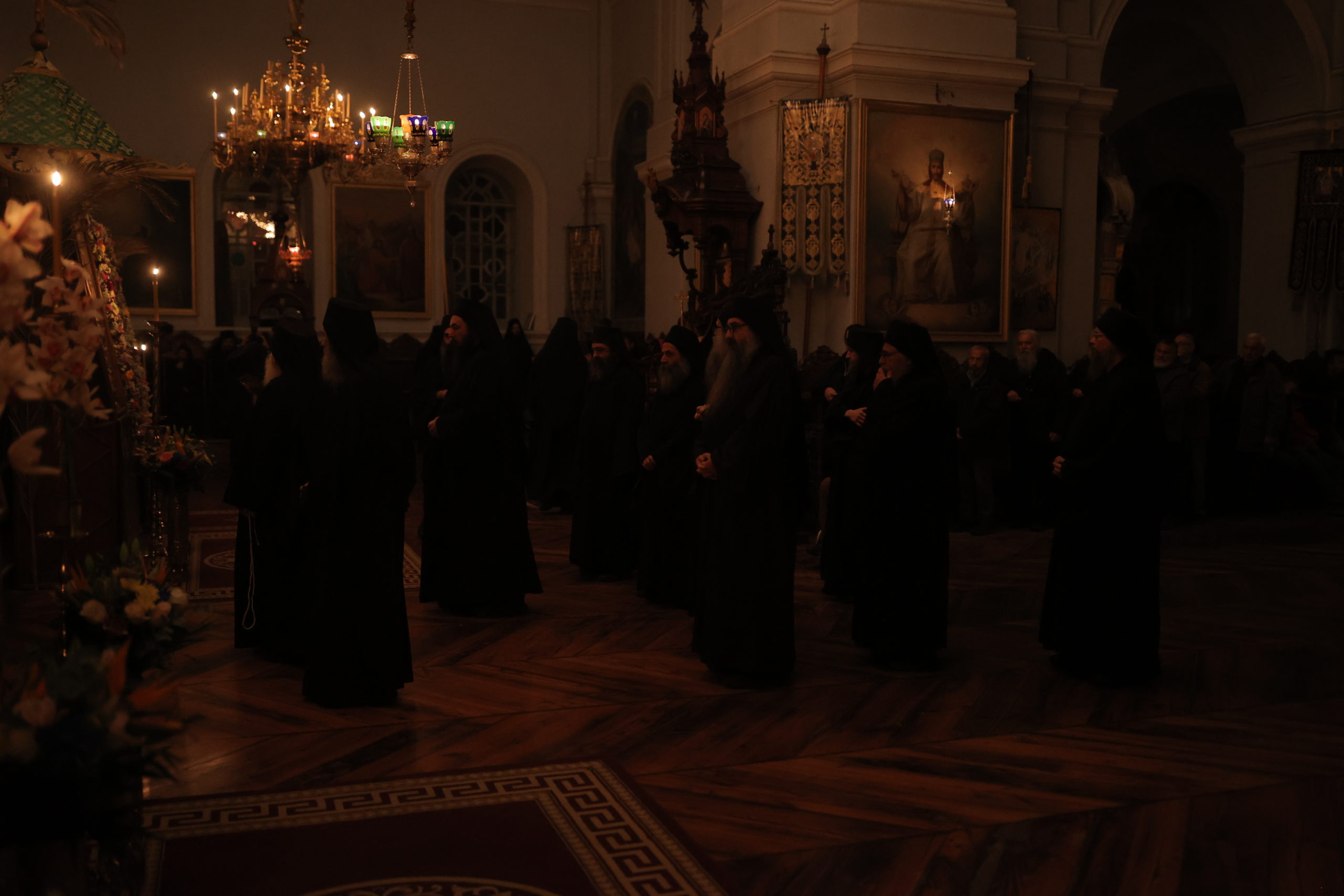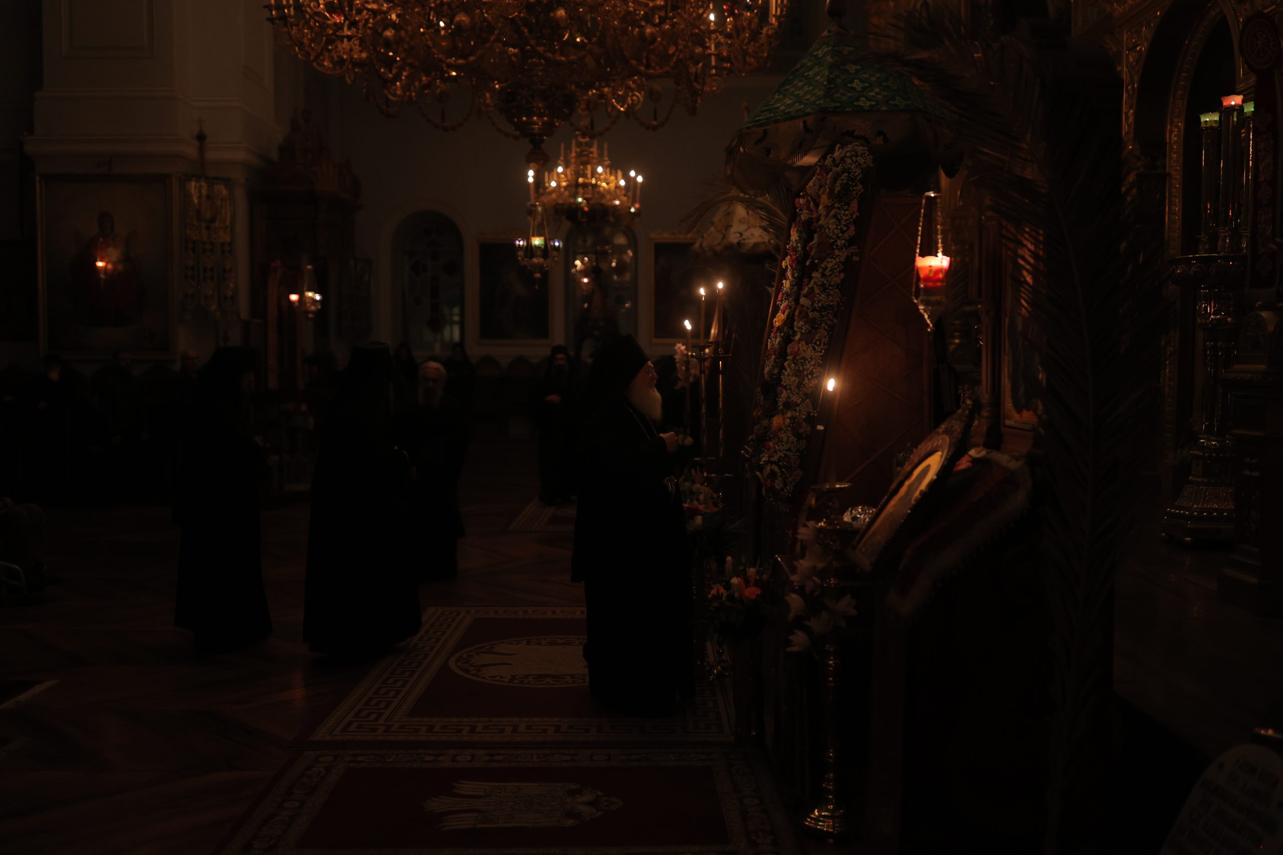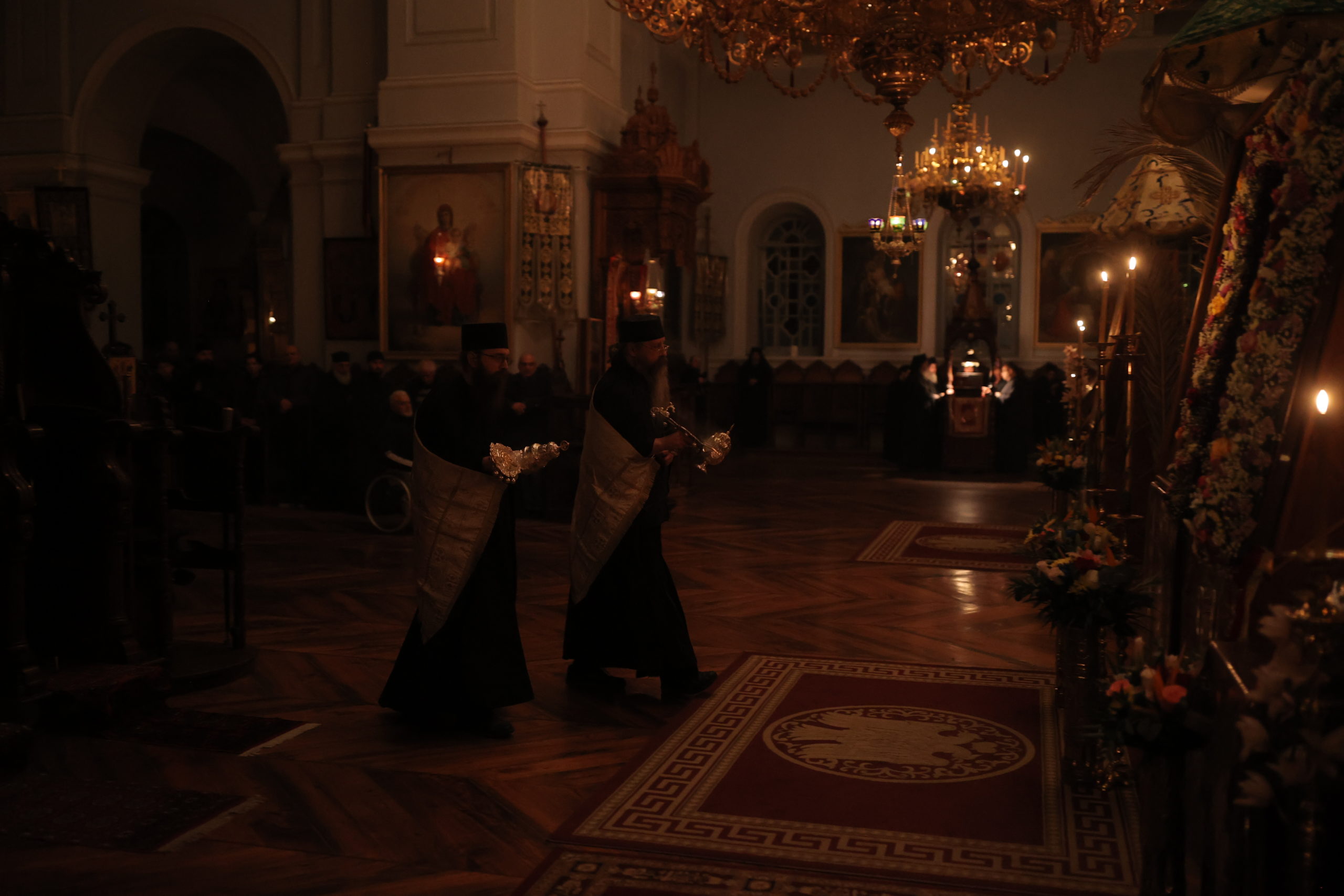 Κατά τον πανηγυρικό Εσπερινό χοροστάτησε ο Δικαίος της Σκήτης Γέροντας Νεκτάριος, καθώς και από πολλοί Κελιώτες πατέρες, ενώ οι ιεροψάλτες απέδωσαν μελωδικά τους ύμνους της εορτής, συμβάλλοντας στο κατανυκτικό κλίμα της ακολουθίας.