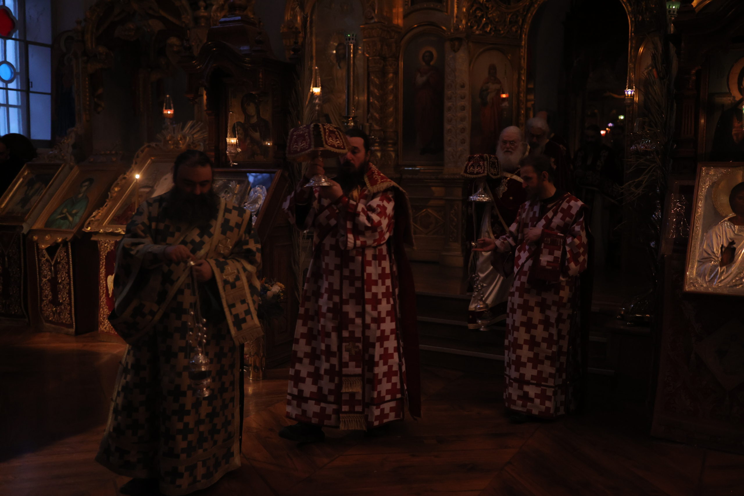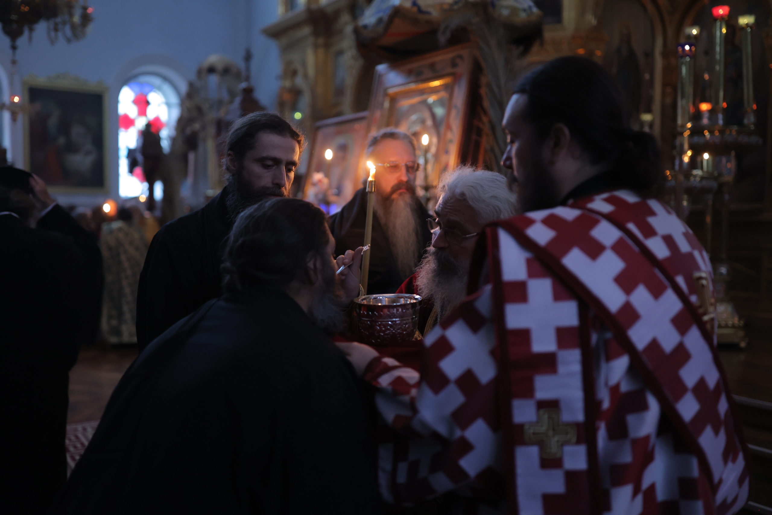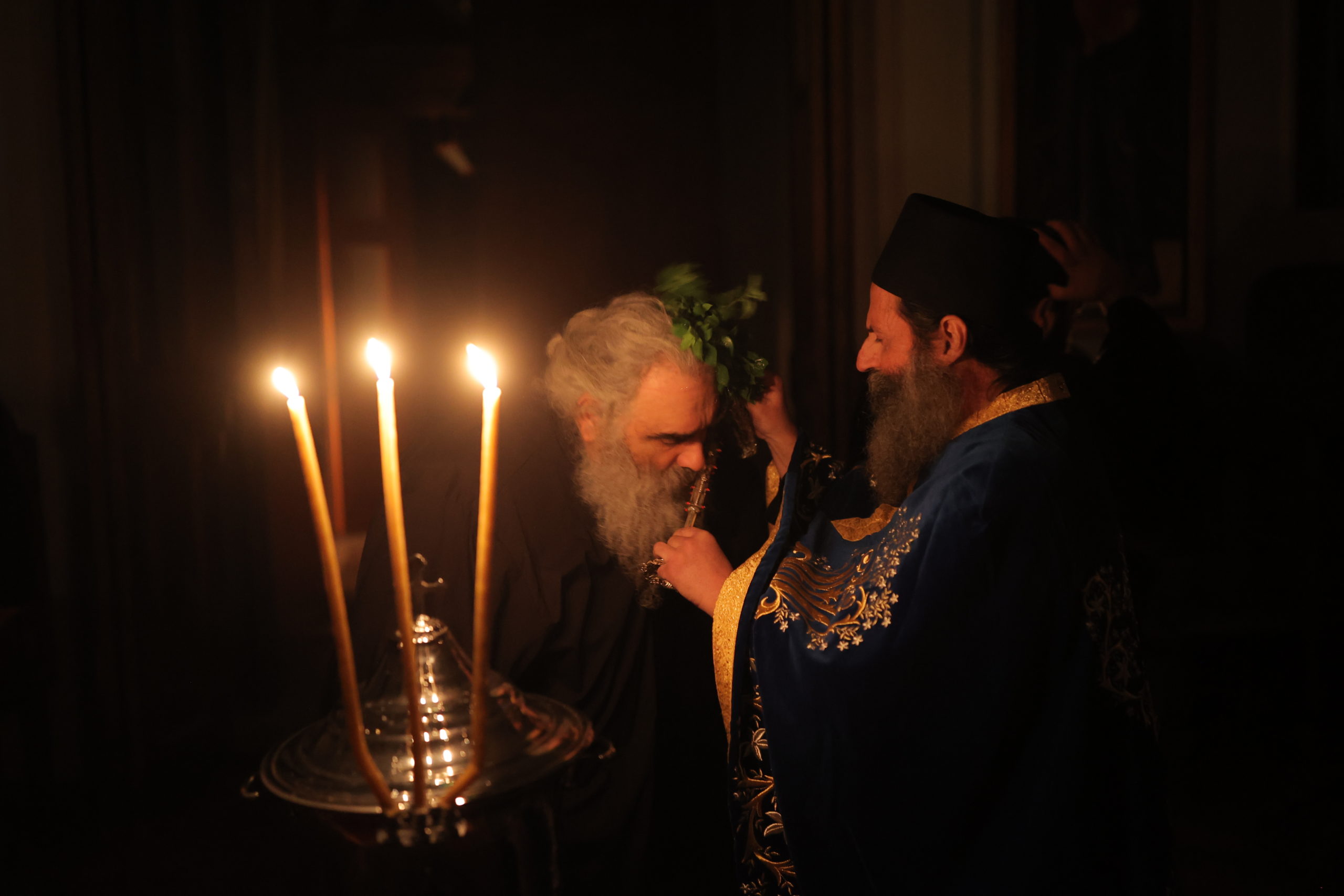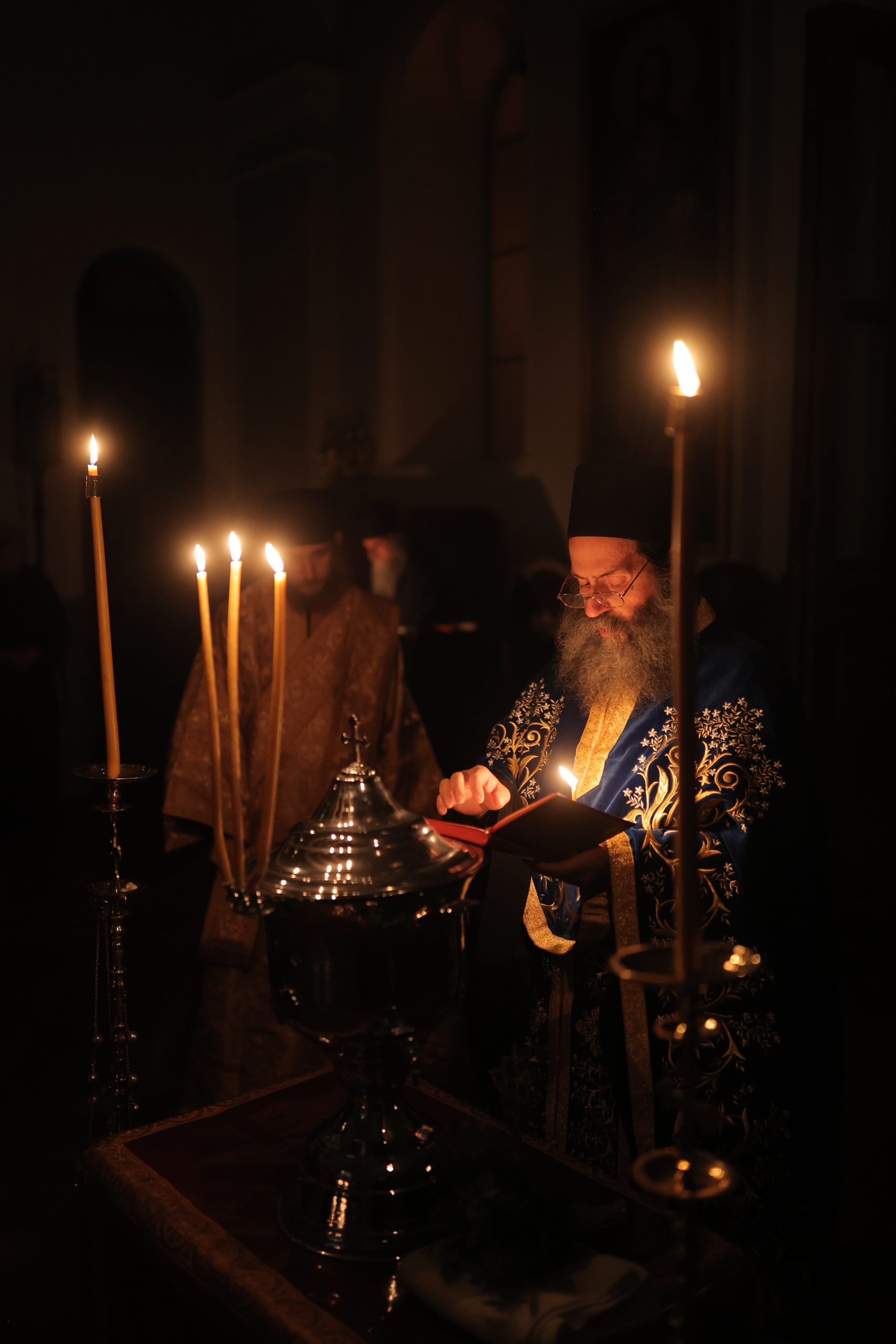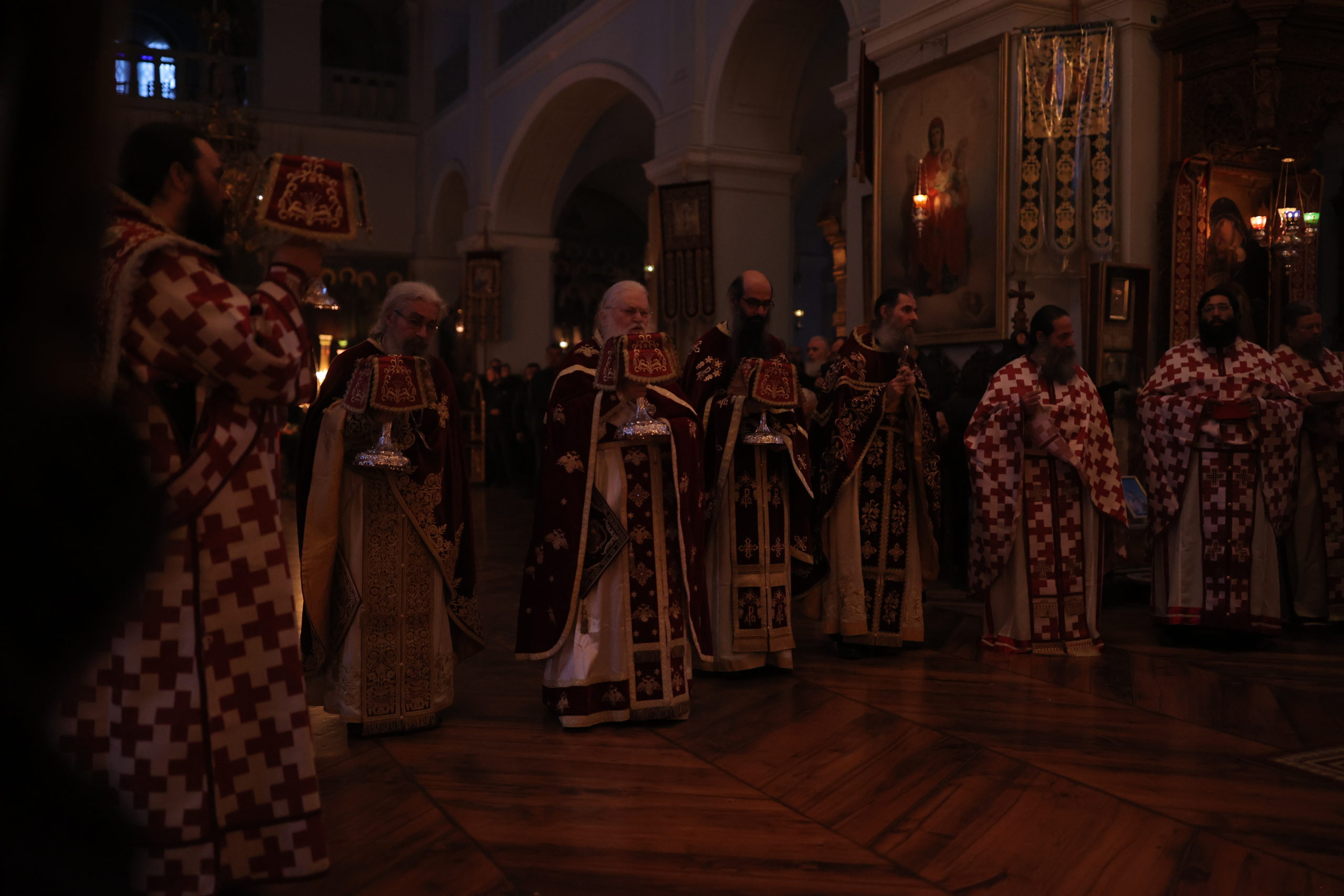 Κατά τον πανηγυρικό Εσπερινό χοροστάτησε ο Δικαίος της Σκήτης Γέροντας Νεκτάριος, καθώς και από πολλοί Κελιώτες πατέρες, ενώ οι ιεροψάλτες απέδωσαν μελωδικά τους ύμνους της εορτής, συμβάλλοντας στο κατανυκτικό κλίμα της ακολουθίας.