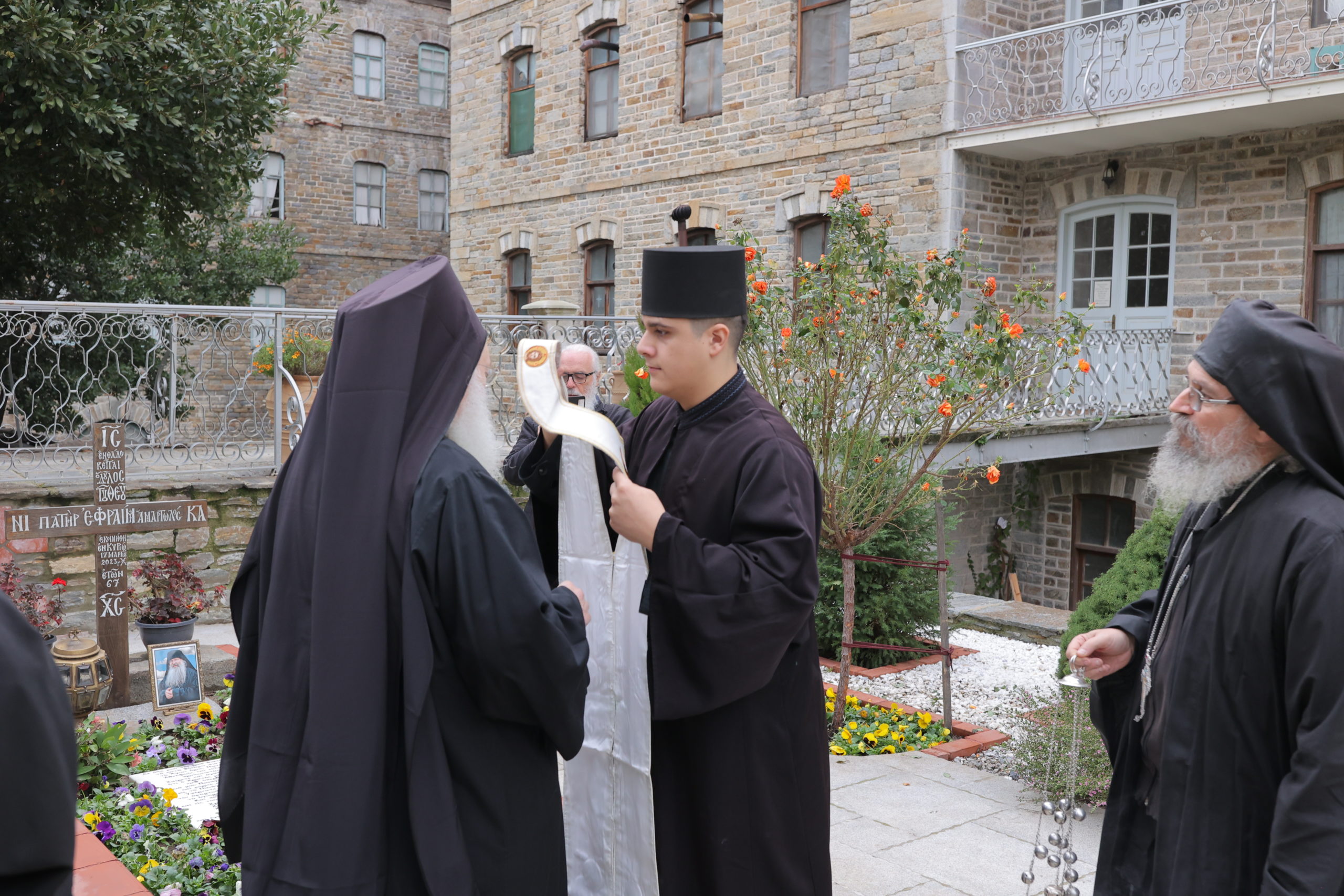 Με την ευκαιρία της εορτής ο Γέροντας Εφραίμ είχε την ευκαιρία να συνομιλήσει με τους μαθητές και τους εκπαιδευτικούς της Αθωνιάδος Εκκλησιαστικής Σχολής, απευθύνοντάς τους πατρικές νουθεσίες και λόγους πνευματικής οικοδομής.
