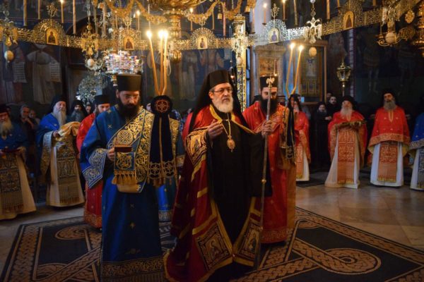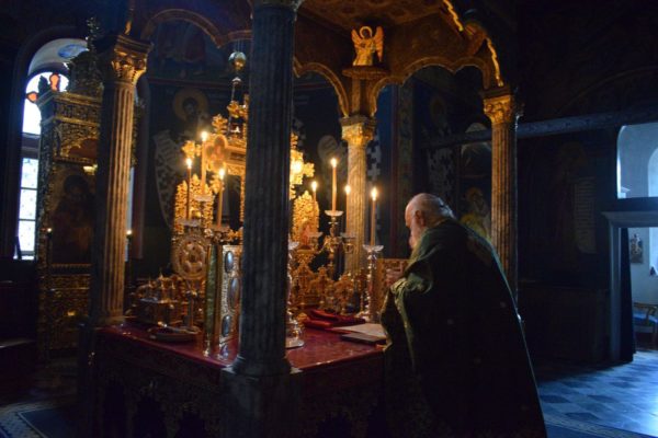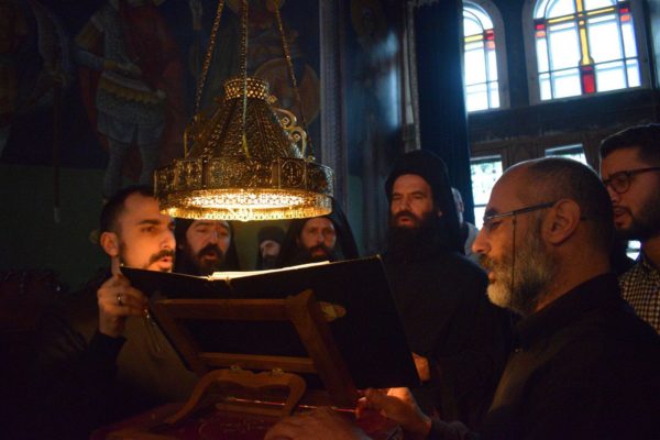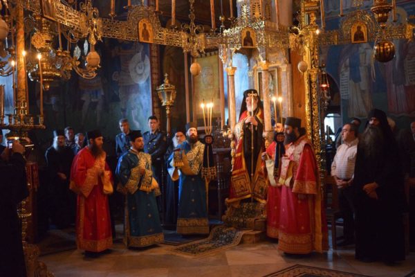 Χθες το βράδυ εψάλη ο Πανηγυρικός Εσπερινός, με τους Βατοπαιδινούς πατέρες να τιμούν την Ιερά Εικόνα της Παναγίας, που έφυγε από το Βατοπαίδι για την Ιερά Μονή Ξενοφώντος, απαρτίζοντας τον δεξιό χορό.