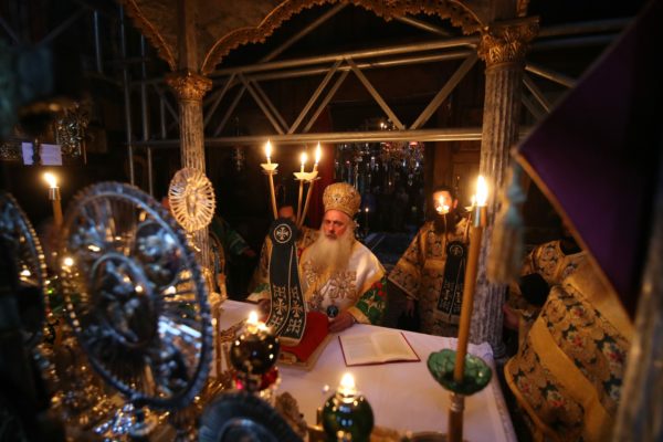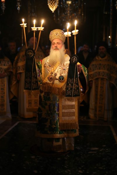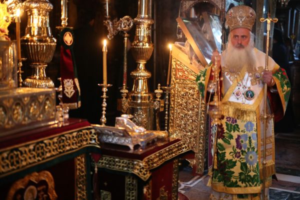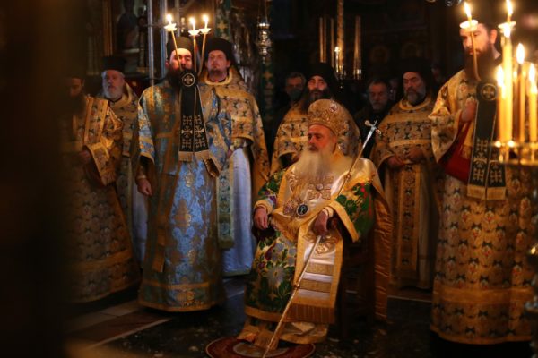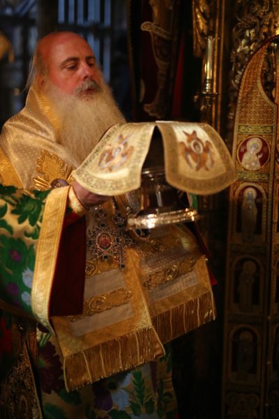 Κατά τη διάρκεια της θείας Λειτουργίας ο Μητροπολίτης κ. Θεοδόσιος ανέπεμψε δέηση ενώπιον της Αγίας Ζώνης για το κορωνοϊό και τον πόλεμο στην Ουκρανία.