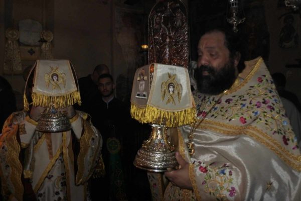 Ακολούθως τελέσθηκε ο Μέγας Πανηγυρικός Αρχιερατικός Εσπερινός χοροστατούντος του Μητροπολίτου Θαυμακού κου Ιακώβου, Καθηγουμένου της Ι.Μ. Ασωμάτων Πετράκη.