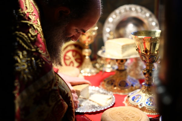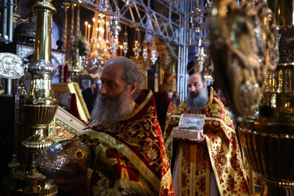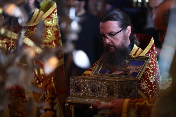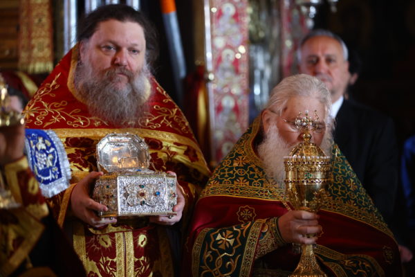 Της Θείας Λειτουργίας προέστη ο Καθηγούμενος της Ιεράς Μονής Χιλανδαρίου Γέροντας Μεθόδιος και συλλειτούργησαν ο Καθηγούμενος της Ιεράς Μεγίστης Μονής Βατοπαιδίου Γέροντας Εφραίμ ο Αρχιμ. Δαμασκηνός Κιαμέτης, Πρωτοσύγκελος της Ιεράς Μητροπόλεως Δημητριάδος και βατοπαιδινοί πατέρες.