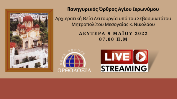 Το Διεθνές πρακτορείο «Ορθοδοξία» www.ope.gr σε συνεργασία με την pemptousia.tv μετέδωσε ζωντανά χθες το απόγευμα την υποδοχή της Τιμίας Κάρας του Αγίου Ιερωνύμου και την Ιερά Αγρυπνία, ενώ τη Δευτέρα το πρωί, κυριώνυμο ημέρα της εορτής του Αγίου, θα μεταδώσει σε συνεργασία με την pemptousia.tv ζωντανά τον Πανηγυρικό Όρθρο και την Αρχιερατική Θεία Λειτουργία υπό του Σεβασμιωτάτου Μητροπολίτη Μεσογαίας και Λαυρεωτικής κ. Νικολάου στις 7:00 π.μ.