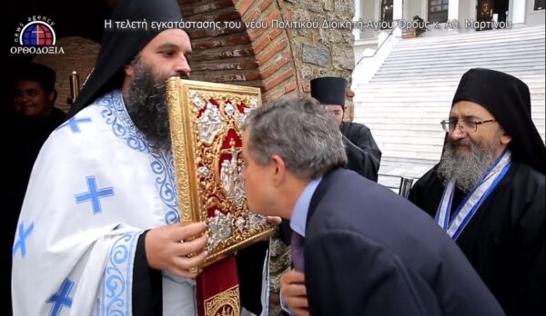 Τον νέο Διοικητή προσφώνησε εκ μέρους της Ιεράς Κοινότητος ο Πρωτεπιστάτης Γέροντας Συμεών Διονυσιάτης.