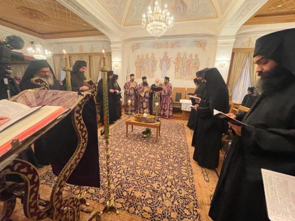 Η Ιερά Ακολουθία του Νιπτήρος τελέσθηκε στην Ιερά Μεγίστη Μονή Βατοπαιδίου υπό του Καθηγουμένου της Ιεράς αγιορείτικης Μονής Γέροντος Εφραίμ την Μεγάλη Πέμπτη 21 Απριλίου 2022.