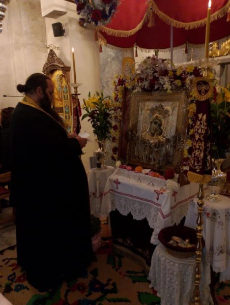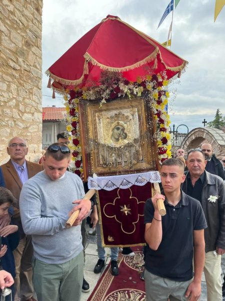 Την Ιερά Εικόνα της Παναγίας, την οποία εκόμισε ο Παν. Αρχιμ. π. Πορφύριος Κουτλουμουσιανός, υπεδέχθη, έμπροσθεν του Κοινοτικού Καταστήματος, ο Λαός της Περιστεράς με επικεφαλής τον Εφημέριό της Παν. Αρχιμ. π. Αθανάσιο Σφουγγάρο και Κληρικούς της Ιεράς Μητροπόλεως Ιερισσού, τον Τοπικό Πρόεδρο κ. Δημήτριο Ντισλή, Αντιδημάρχους του Δήμου Θέρμης κ.ά. και εν συνεχεία λιτανευτικώς μετέβησαν στον Ιερό Ναό του Αγίου Ανδρέου όπου τελέστηκε Πανηγυρικός Εσπερινός.