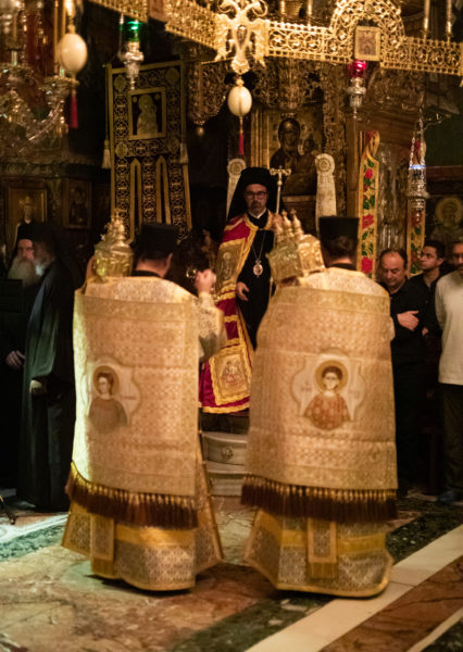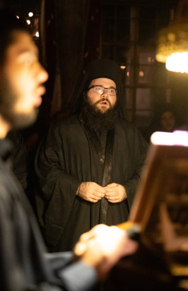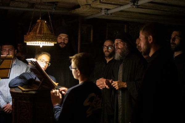 Τον χορό των ψαλτών πλαισίωσαν δεξιά Καρακαλινοί πατέρες, αριστερά Βατοπαιδινοί, καθώς και έψαλλαν ο Γεώργιος Κωνσταντίνου με μέλη της Ελληνικής Βυζαντινής Χορωδίας.