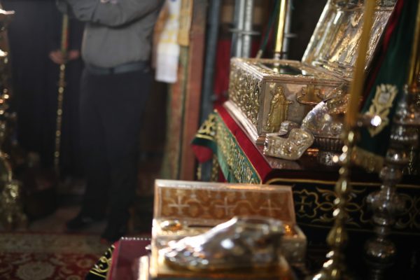 Προ του Μικρού Εσπερινού, την παραμονή της εορτής, τέθηκαν στο κέντρο του Καθολικού τα Τίμια Λείψανα του Αγίου Ευδοκίμου, από τον Σεβασμιώτατο Μητροπολίτη Κινσάσας κ. Θεοδόσιο, ο οποίος πλαισιώθηκε από τον Καθηγούμενο της Ιεράς Μεγίστης Μονής Βατοπαιδίου Γέροντα Εφραίμ, την τιμία Συνοδεία του, Βατοπαιδινούς πατέρες και άλλους Αγιορείτες πατέρες, ιερείς, ιερομόναχους και διακόνους.