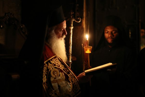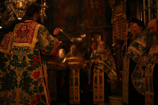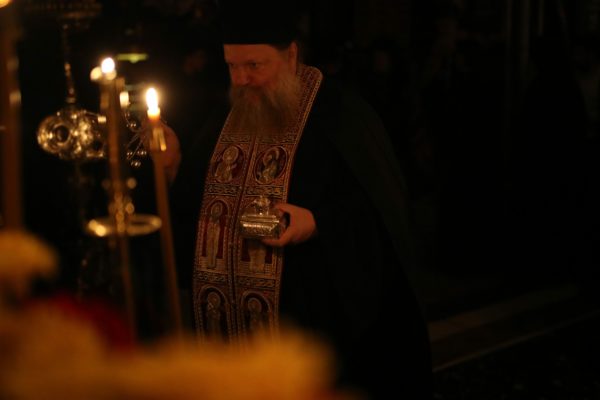 Εν συνεχεία μετά το πέρας της απογευματινής Τράπεζας οι καμπάνες ήχησαν, σημαίνοντας την έναρξη της πανηγυρικής Αγρυπνίας. Του Πανηγυρικού Αρχιερατικού Εσπερινού της Αγρυπνίας προεξήρχε ο Σεβασμιώτατος Μητροπολίτης Κινσάσας κ. Θεοδόσιος.