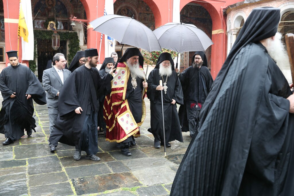 Ο Σεβασμιώτατος Μητροπολίτης Ν Κρήνης και Καλαμαριάς κ Ιουστίνος. έφτασε τις πρώτες πρωινές ώρες του Σαββάτου στην ΙΜΜ Βατοπαιδίου.