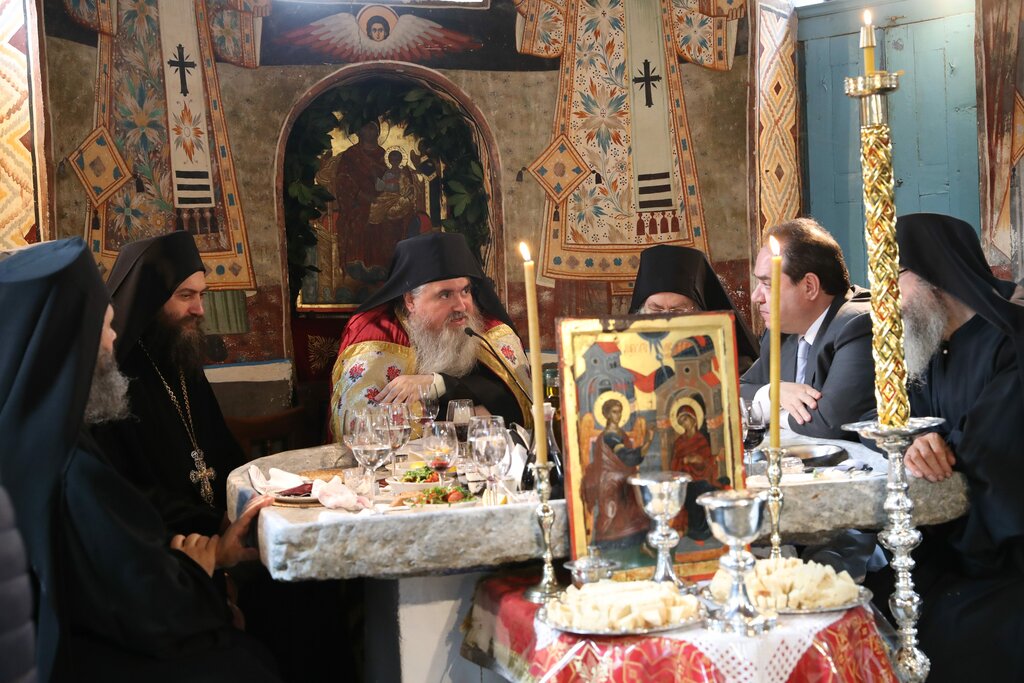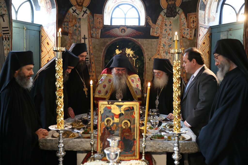 Ο Μητροπολίτης και οι δύο Ηγούμενοι, απηύθυναν λόγο στο συνοδικό και στην τράπεζα δι’ ολίγων για την εορτή του Ευαγγελισμού και το πρόσωπο της Παναγίας μας αλλά και για τον Νεοφανή Σέρβο Άγιο της Εκκλησίας μας Ιουστίνο Πόποβιτς (του οποίου το όνομα φέρει ο Σεβασμιώτατος), καθ’ ότι σήμερα συμπληρώνονται 40 χρόνια από την κοίμηση και 125 από τη γέννηση του μεγάλου αυτού Θεολόγου της Εκκλησίας μας.