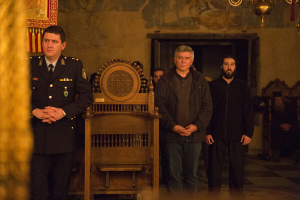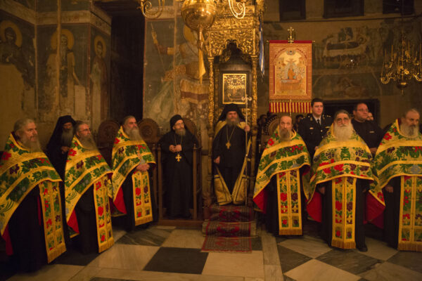 Της Θείας Λειτοργίας προέστη ο Καθηγούμενος της Ιεράς Μονής Κωσταμονίτου Γέροντας Χαράλαμπος, παρουσία του Αγίου Πρώτου, της Ιεράς Επιστασίας και Αντιπροσώπων της Ιεράς Κοινότητας.
