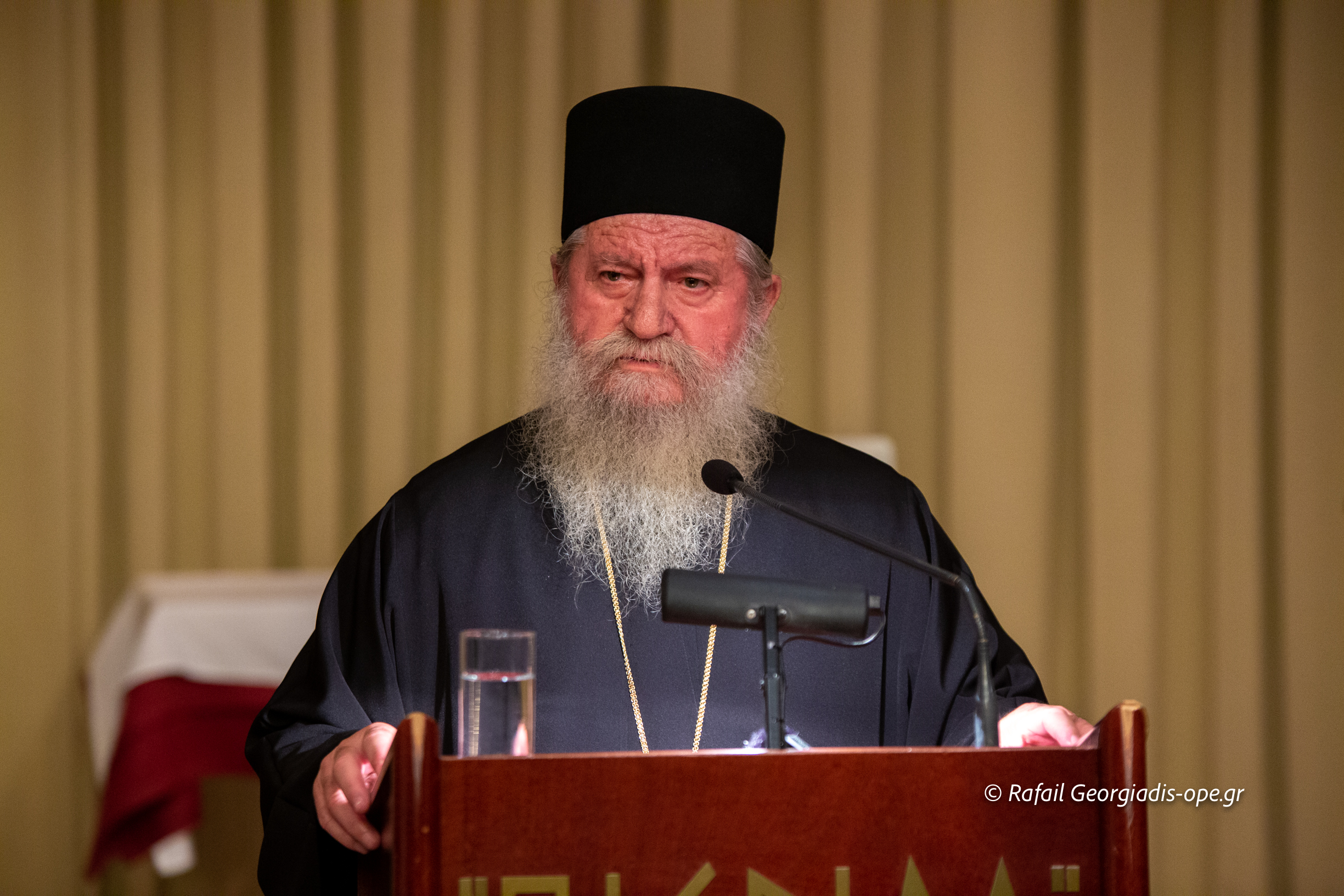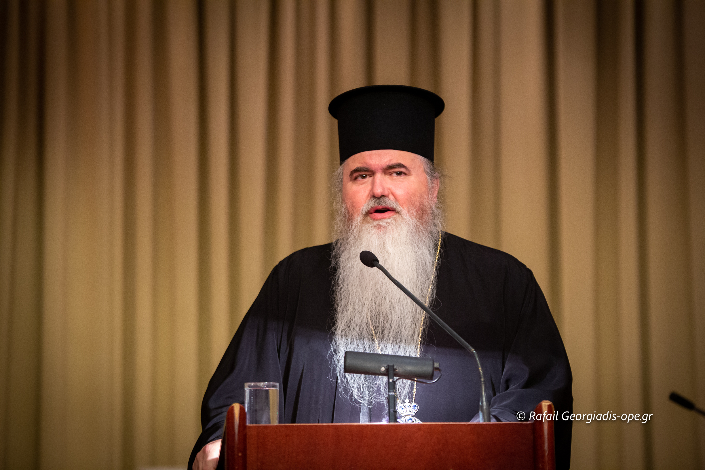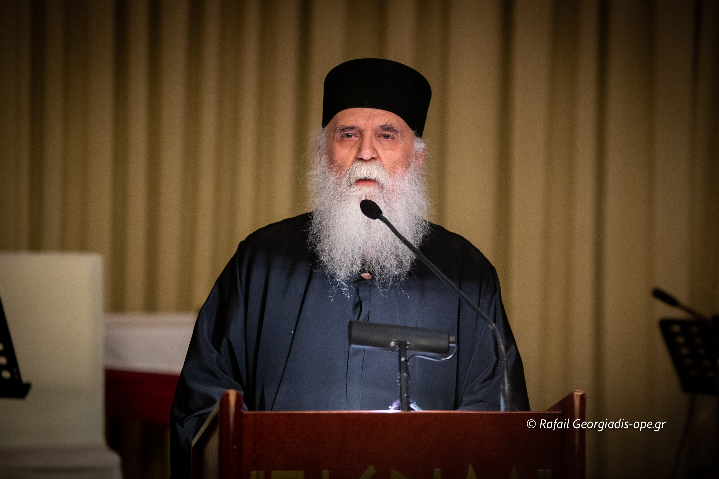 Στη συνέχεια πραγματοποιήθηκε η κεντρική ομιλία του Καθηγουμένου της Ιεράς Μεγίστης Μονής Βατοπαιδίου Γέροντα Εφραίμ με θέμα: «Αγιορείτικα μηνύματα».