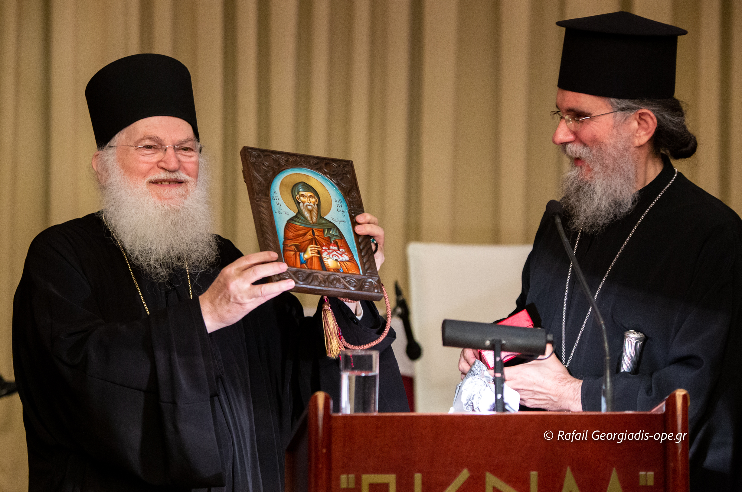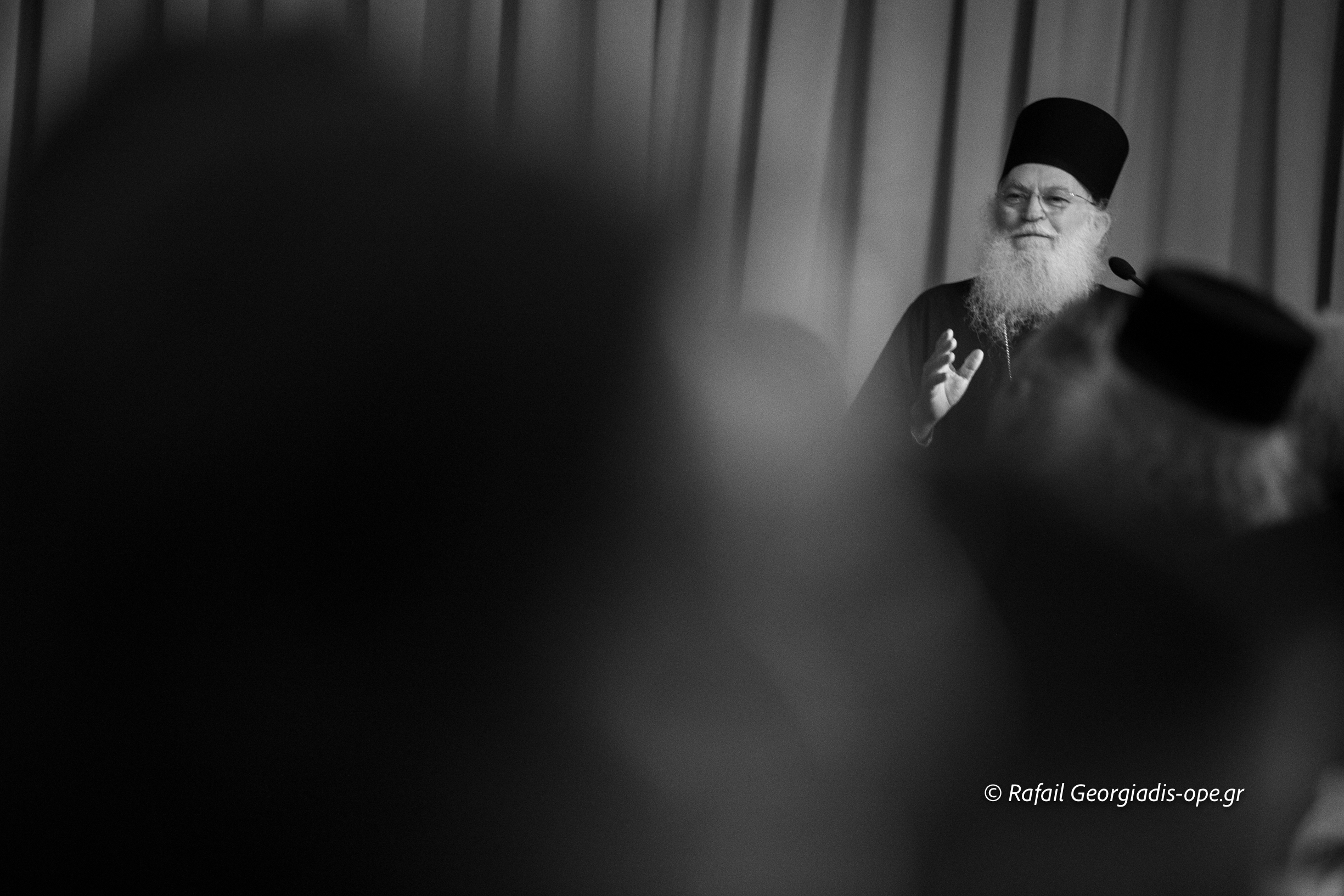 Στη συνέχεια πραγματοποιήθηκε η κεντρική ομιλία του Καθηγουμένου της Ιεράς Μεγίστης Μονής Βατοπαιδίου Γέροντα Εφραίμ με θέμα: «Αγιορείτικα μηνύματα».
