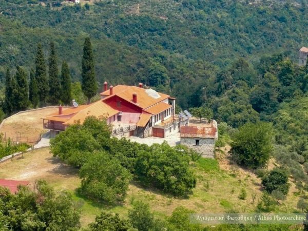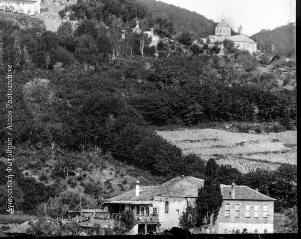 Στα φωτογραφικά στιγμιότυπα το Κελλί Αγίου Νικολάου Μπαρμπερά (Χιλανδαρινό) στις Καρυές του Αγίου Όρους κατά τις αρχές 20ού αιώνα.