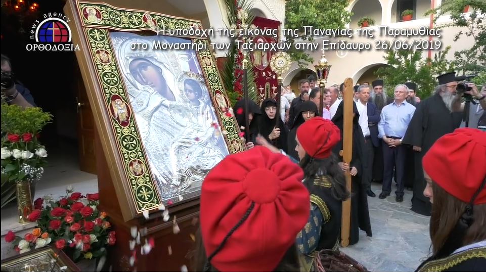 Παρουσία πλήθους πιστών έλαβε χώρα χθες το απόγευμα η υποδοχή της Θαυματουργής Εικόνας (σ.σ. πιστό αντίγραφο) της Παναγίας της Παραμυθίας- εκ της Ιεράς Μεγίστης Μονή Βατοπαιδίου- στην Ιερά Μονή Παμμεγίστων Ταξιαρχών Νέας Επιδαύρου προς ευλογία της Μονής αλλά και των πιστών που θα έχουν τη δυνατότητα να την προσκυνούν από εδώ και στο εξής.