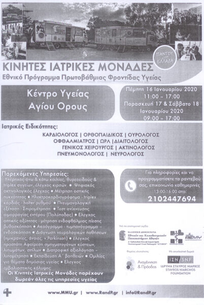“Κινητές Ιατρικές Μονάδες” στο Κέντρο Υγείας Αγίου Όρους
