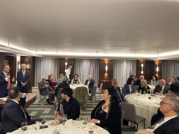 Χαιρετισμό, απεύθυνε ο πρόεδρος του Συλλόγου των Φίλων του Αγίου Όρους κ. Γεράσιμος Φωκάς, ο οποίος και προσέφερε τη δεξίωση. Ακολούθως ο Γραμματέας του Συλλόγου Καθηγητής ΕΚΠΑ κ. Ιωάννης Παναγιωτόπουλος αναφέρθηκε στις επικείμενες δράσεις του Συλλόγου. Παρευρέθηκαν ο Αντιπρόεδρος του ΦΑΟ κ. Ιωάννης Ιωαννίδης, ο Ταμίας Αιδεσιμολογιώτατος π. Αντώνιος Μπαφαλούκος, ο Ειδικός Γραμματέας κ. Γεώργιος Μουρούτης και τα μέλη του ΔΣ κ. Ιωάννης Κουρνιώτης και Ευάγγελος Κατσίκης.