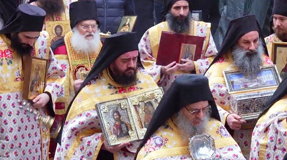 Της Ευχαριστιακής Συνάξεως και της Λιτανείας των Ιερών Εικόνων και Αγίων Λειψάνων προεξήρχε ο Καθηγούμενος της Μονής Γέρων Εφραίμ πλαισιούμενος από τους πατέρες της Βατοπαιδινής Αδερφότητας και άλλους Αγιορείτες πατέρες. Η ιερά Λιτάνευση τελείται κάθε χρόνο την Κυριακή της Ορθοδοξίας ως ανάμνηση της αναστήλωσης των εικόνων στην Κωνσταντινούπολη, η οποία καθιερώθηκε από την Αυτοκράτειρα Θεοδώρα, το γιο Μιχαήλ τον Γ’ και τον Πατριάρχη Κωνσταντινουπόλεως Μεθόδιο, το 843μ.Χ.