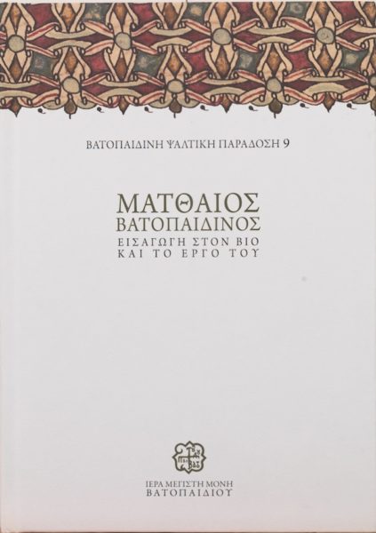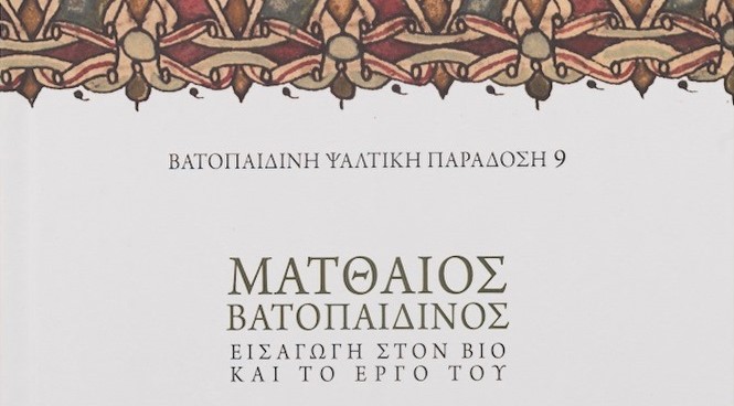 Η Ιερά Μεγίστη Μονή του Βατοπαιδίου εγκαινιάζει μία νέα εκδοτική σειρά με τον τίτλο Βατοπαιδινή Ψαλτική Παράδοση, με το έργο Ματθαίος Βατοπαιδινός – Εισαγωγή στον βίο και στο έργο του (ψάλτη, καλλιγράφου κωδικογράφου, εξηγητού της σημειογραφίας, μελοποιού και διδασκάλου της ψαλτικής).