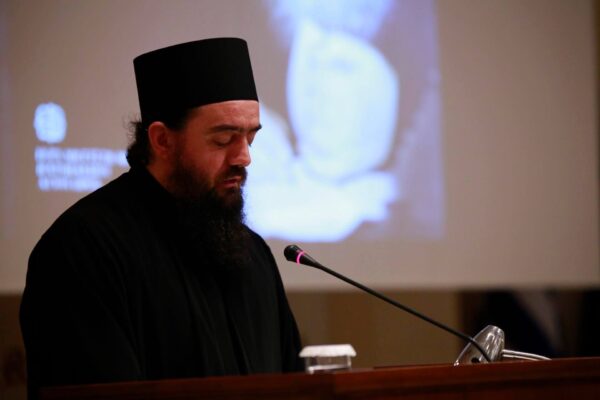 Εκ μέρους της Ιεράς Μεγίστης Μονής Βατοπαιδίου και του Καθηγουμένου Γέροντος Εφραίμ, ομίλησε ο πατήρ Μαξιμος Βατοπαιδινός, με θέμα : “Ο Γέροντας Μωυσής ως Αγιορείτης”, μεταφέροντας, έτσι, το μήνυμα του Καθηγουμένου, το οποίο είχε επακριβώς, ως εξής: