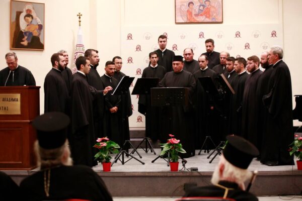 Αρχικά, η εκδήλωση ξεκίνησε με την απόδοση ύμνων από τον χορό «Οι Κρήτες Μαΐστορες».