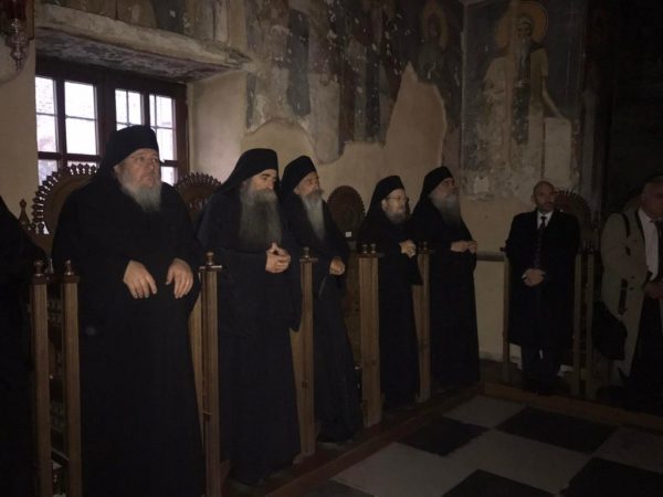 Ακολούθως πραγματοποιήθηκε δεξίωση και έκτακτη συνεδρία της Ιεράς Κοινότητας, παρουσία του Υπουργού Εξωτερικών.