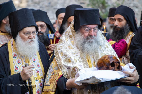 Η Κάρα του μακαριστού Γέροντος Ιωσήφ του Βατοπαιδινού μετά την Ανακομιδή των λειψάνων του στις 20 Οκτωβρίου 2021 στην Ιερά Μεγίστη Μονή Βατοπαιδίου (Φώτο: Ραφαήλ Γεωργιάδης – Πρακτορείο “ΟΡΘΟΟΔΟΞΙΑ):