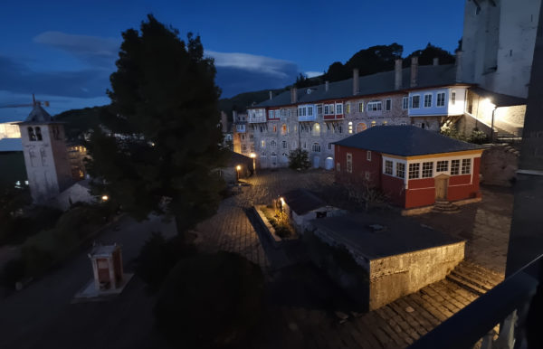 Στη συνέχεια ακολούθησε μοναστηριακή τράπεζα και το βράδυ μοναστική σύναξη όπου ομίλησε ο Καθηγούμενος της Ιεράς Μεγίστης Μονής Βατοπαιδίου Γέροντας Εφραίμ, καθώς και ο Καθηγούμενος του Ιερού Ησυχαστηρίου Γέροντας Νεκτάριος Μουλατσιώτης.