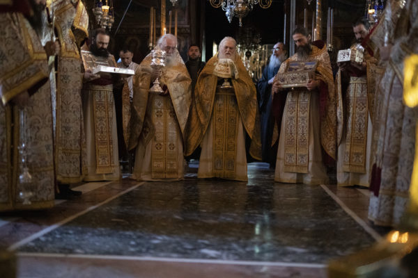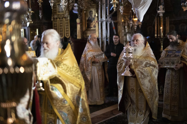 Το πρωί της Κυριακής, επί τη εορτή του Αγίου Ιωάννου της Κλίμακος, τελέστηκε ιερατικό Συλλείτουργο προεξάρχοντος του Καθηγουμένου της Ιεράς Μεγίστης Μονής Βατοπαιδίου Γέροντος Εφραίμ.
