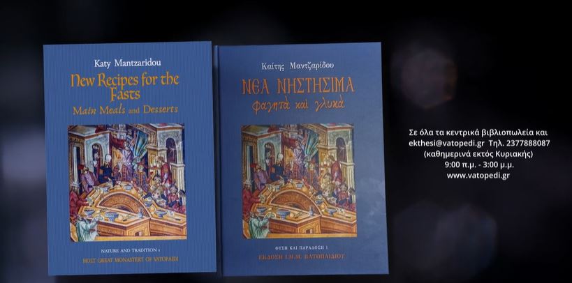 Ένα εξαιρετικά χρήσιμο βιβλίο της κας Καίτης Μαντζαρίδου «Νέα Νηστήσιμα φαγητά και γλυκά», κυκλοφoρεί από τις εκδόσεις της Ι.Μ.Μ. Βατοπαιδίου.
