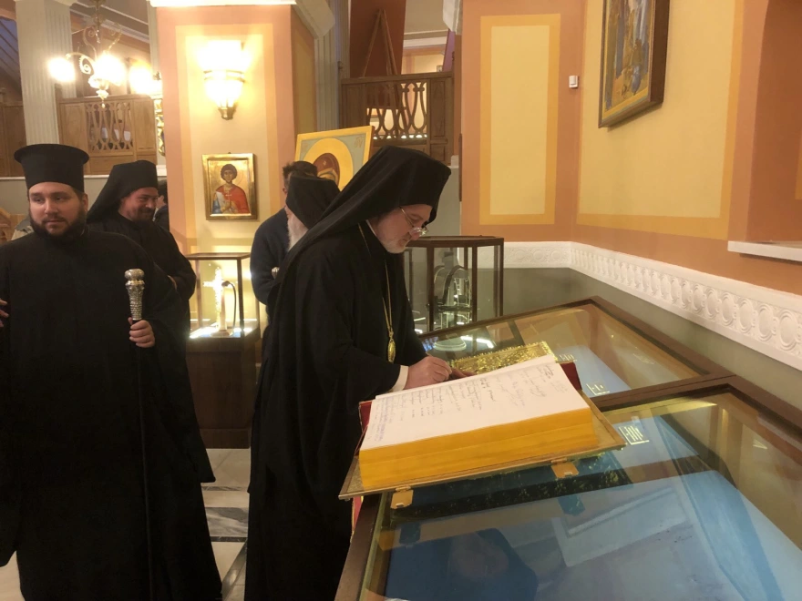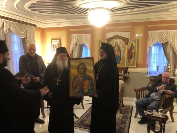 Ο ηγούμενος της Ιεράς Μονής Ξενοφώντος, Αρχιμανδρίτης Αλέξιος, υποδέχθηκε τον κ. Ελπιδοφόρο και τα μέλη της ελληνοαμερικανικής κοινότητας.