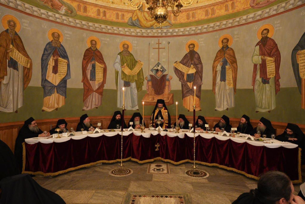 Κατά την πανηγυρική τράπεζα ομίλησαν ο Πρωτεπιστάτης του Αγίου Όρους, Πανοσιολογιώτατος κ. Στέφανος, ο Ηγούμενος της Μονής της Μεγίστης Λαύρας κ. Πρόδρομος, ο ηγούμενος της Μονής των Ιβήρων κ. Ναθαναήλ και, τέλος, ο Σεβασμιώτατος Αρχιεπίσκοπος Αυστραλίας κ.κ. Μακάριος.