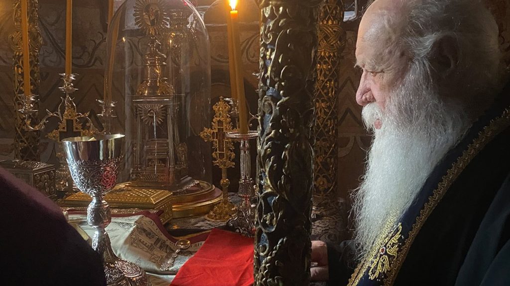 Ακολούθησε Πανηγυρική Τράπεζα και κέρασμα στο Συνοδικό της Μονής, όπου ο Γέροντας Αλέξιος ευχαρίστησε άπαντες τους παρευρισκομένους για τον κόπο τους να έλθουν στον παρόντα εορτασμό, παροτρύνοντας τους σε έντονη και έμπονη προσευχή για την κατάπαυση του αδελφοκτόνου πολέμου, που μαίνεται στην Ουκρανία.
