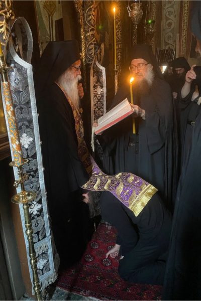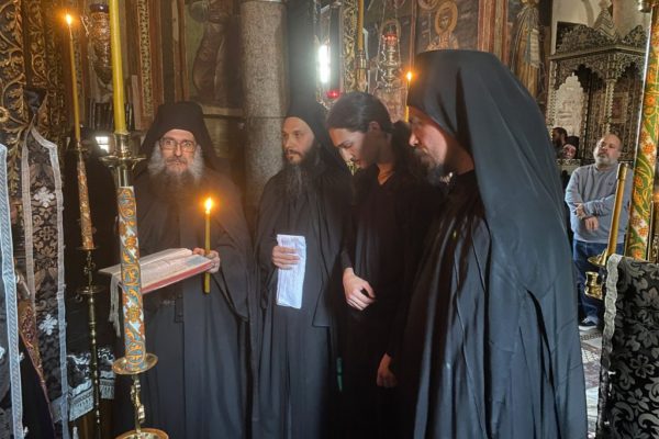Σύμφωνα με την ανακοίνωση της Μονής, το προηγούμενο απόγευμα είχε τελεσθεί ο πανηγυρικός Εσπερινός μετά Προηγιασμένης Θείας Λειτουργίας. Μετά δε το Μεγάλο Απόδειπνο ετελέσθη η Ρασοευχή του αδελφού Θεοδώρου, μετονομασθέντος σε Συμεών Μοναχό, τιμώντας έναν εκ των πρώτων Κτιτόρων της Μονής, τον Συμεών τον «Ηγιασμένο», ο οποίος ασκήθηκε περί τον 11ον αιώνα και άφησε μνήμη αγίου ανδρός.