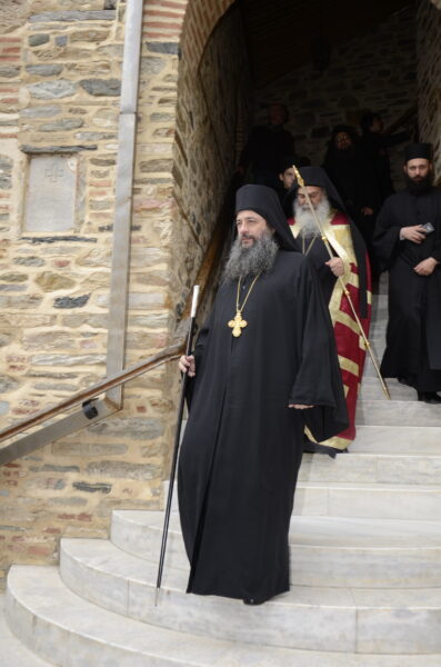 Κατά την παραμονή του εις τον Άγιον Όρος και εις την εν λόγω Ιερά Μονή, έγινε δεκτός με ιδιαιτέρα χαρά και εγκαρδιότητα από τον Καθηγούμενο Αρχιμανδρίτη, π. Γαβριήλ, αλλά και τα υπόλοιπά μέλη της αγιορείτικης αδελφότητος. Ακολουθούν