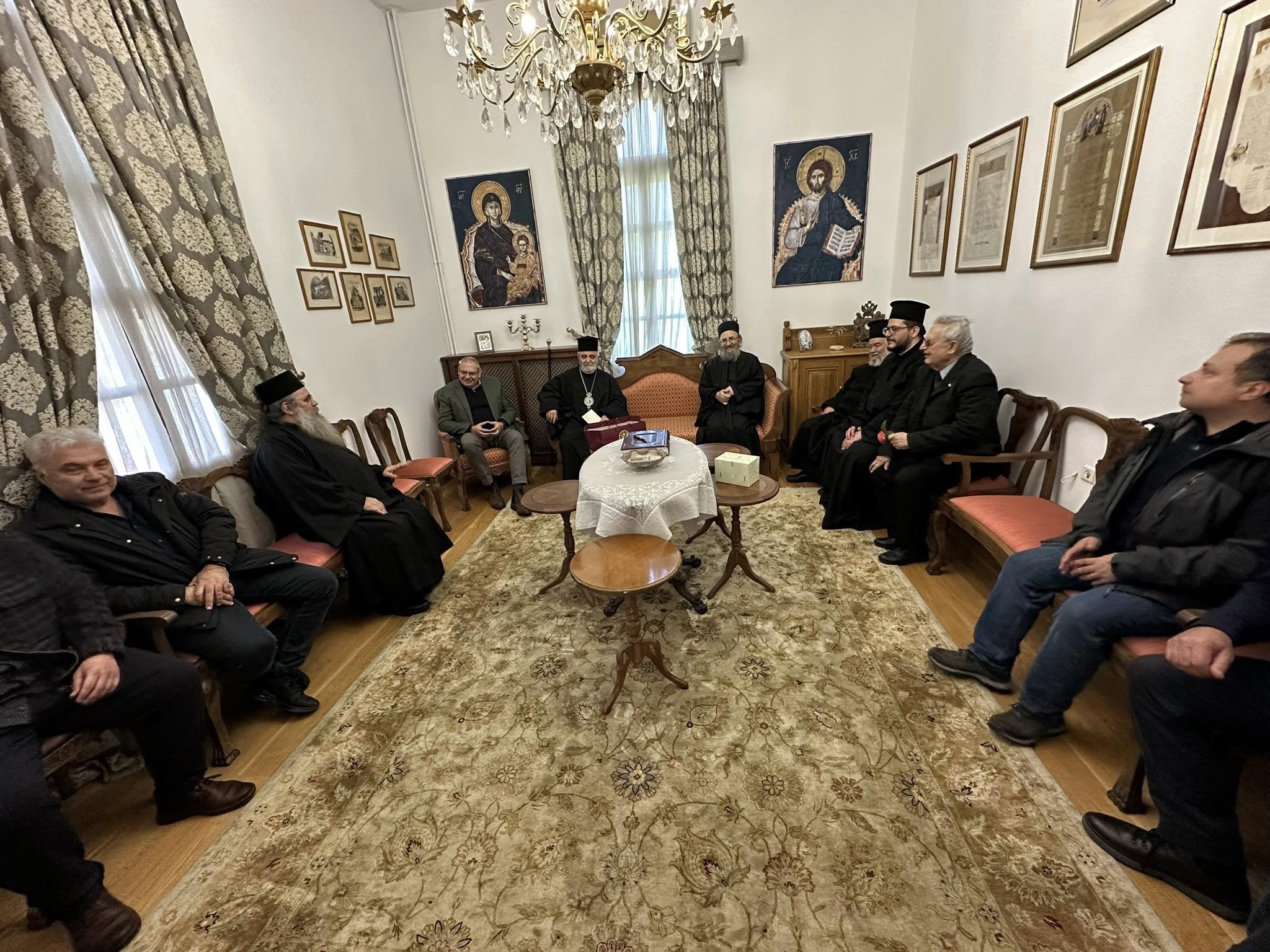 Μετά την επίσκεψη στην Ιερά Μονή Αγίου Διονυσίου Αγίου Όρους για την εορτή του Ακαθίστου Ύμνου, ο Σεβασμιώτατος Μητροπολίτης Γέρων Δέρκων κ. Απόστολος και η συνοδεία του μετέβησαν Την Κυριακή, 6 Απριλίου 2025, στην Ιερά Κοινότητα και στο Πρωτάτο, όπου τους υποδέχτηκαν ο Πολιτικός Διοικητής του Αγίου Όρους κ. Αλκιβιάδης Στεφανής και ο Πρωτεπιστάτης του Αγίου Όρους Γέρων Συμεών.