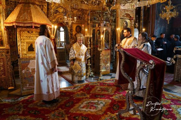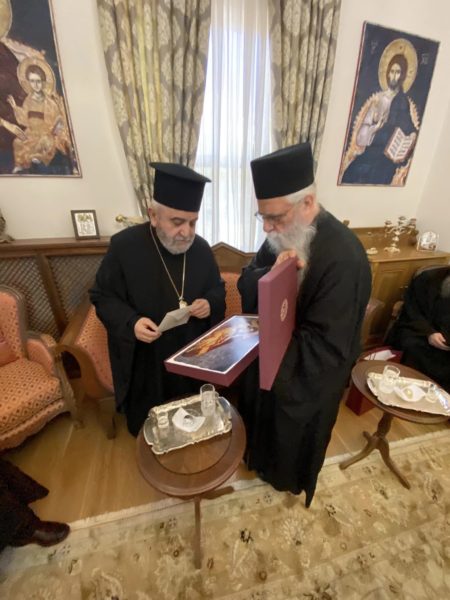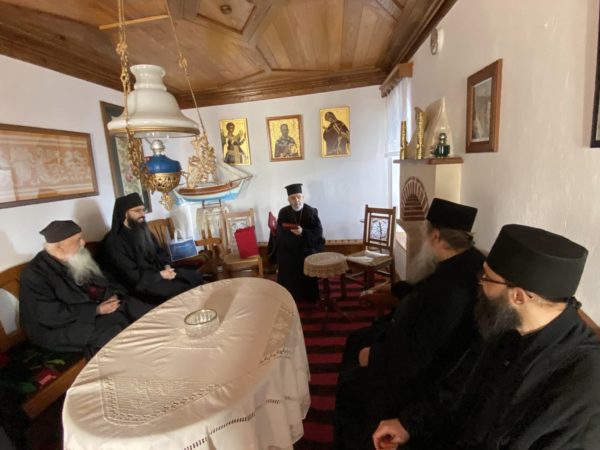 Την Τετάρτη 29η Μαρτίου 2023 ο Σεβασμιώτατος μετά της συνοδείας αυτού, του Πρωτοπρεσβυτέρου του Οικουμενικού Θρόνου π. Γεωργίου Λαδουκάκη, του Πρεσβυτέρου π. Πορφυρίου Καρατζίκου και του Διακόνου π. Δανιήλ Ζαφείρη, καθώς και του μοναχού Νικολάου της Μονής Αγίου Διονυσίου, εισήλθαν στο Άγιον Όρος λόγω των δυσμενών καιρικών συνθηκών, και της απαγορεύσεως του απόπλου, διά της ξηράς οδού, για να καταλύσουν εν τω Κελλίω του Ευαγγελισμού της Θεοτόκου εν Καρυαίς, όπου τους υποδέχθηκαν ο Γέροντας του Κελλίου του Ευαγγελισμού της Θεοτόκου Καρυών Αγίου Όρους Πανοσιολ. Αρχιμ. π. Πρόδρομος και η συνοδεία αυτού.