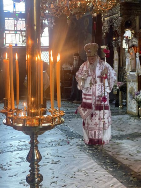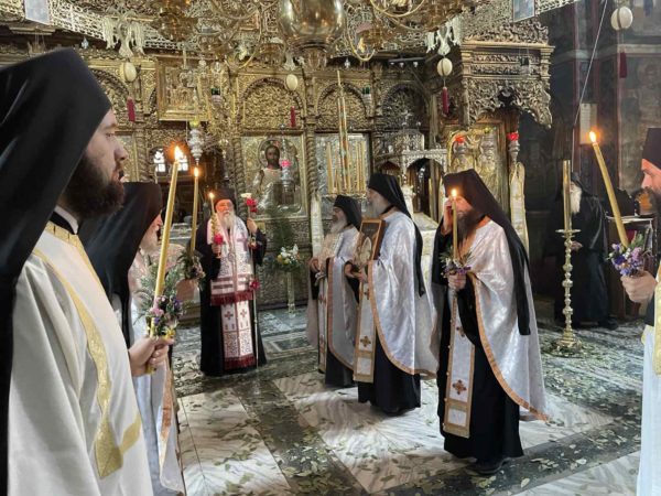 Το εσπέρας της Τετάρτης της Διακαινησίμου, ο Σεβασμιώτατος χοροστάτησε στον αναστάσιμο εσπερινό, και την επομένη, Πέμπτη της Διακαινησίμου, συλλειτούργησε μετά του αγίου καθηγουμένου και πολλών πατέρων της Ιεράς Μονής, όπου στο τέλος τελέστηκε αναστάσιμη λιτανεία και ο καθιερωμένος αγιασμός πέριξ της Ιεράς Μονής.