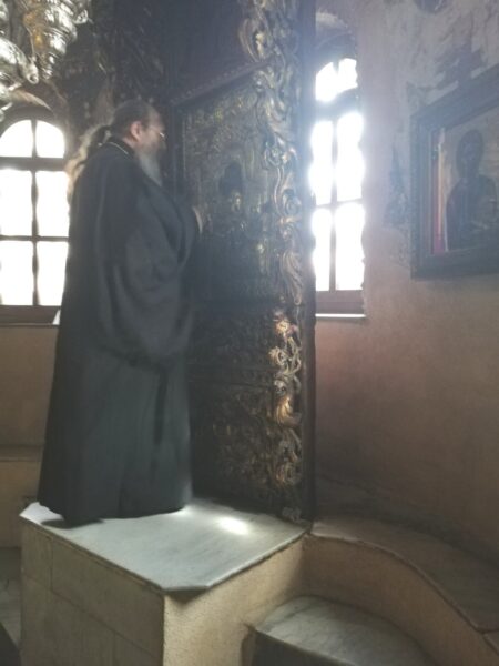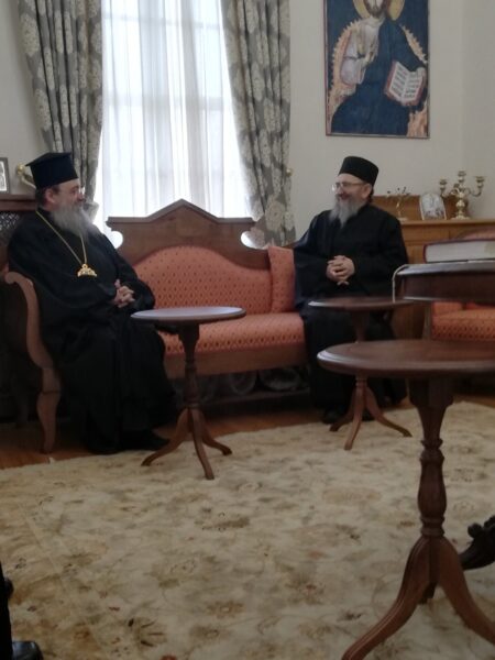 Στην Ιερά Επιστασία υπεδέχθη τον Σεβασμιώτατο ο Πρωτεπιστάτης, Γέρων Συμεών Διονυσιάτης και είχαν επί αρκετή ώρα πνευματική συνομιλία.