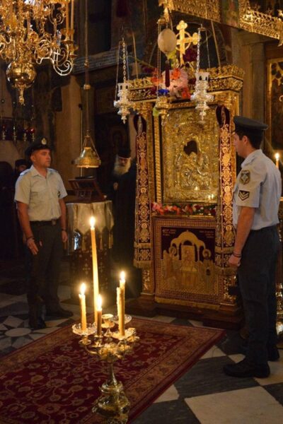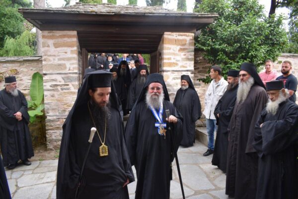 Στη Θεία Λειτουργία παρέστη ο Πρωτεπιστάτης του Αγίου Όρους Γέροντας Παύλος Λαυριώτης και εκπρόσωποι της Ιεράς Κοινότητας.